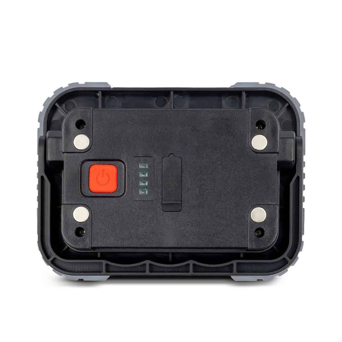 Lampka warsztatowa COB | Madalynn to wyśmienity towarzysz wszelkich prac serwisowych i terenowych. Zamknięta w kompaktowej obudowie 14,5 × 10,3 × 4 cm z lekkiego ABS i TPR (zaledwie 170 g!) skrywa potężne źródło światła o mocy 10 W i aż 500 lumenów. Do wyboru masz 3 tryby oświetlenia – silny, normalny i migający – dzięki czemu dopasujesz jasność do sytuacji. Wbudowana bateria 2000 mAh ładuje się wygodnie przez micro USB, a złącze USB pozwala w razie potrzeby doładować telefon lub inny drobiazg podczas pracy. O stanie energii informują cztery diody, natomiast cztery mocne magnesy oraz regulowana rączka gwarantują stabilne mocowanie i perfekcyjne ustawienie kąta świecenia 😊.