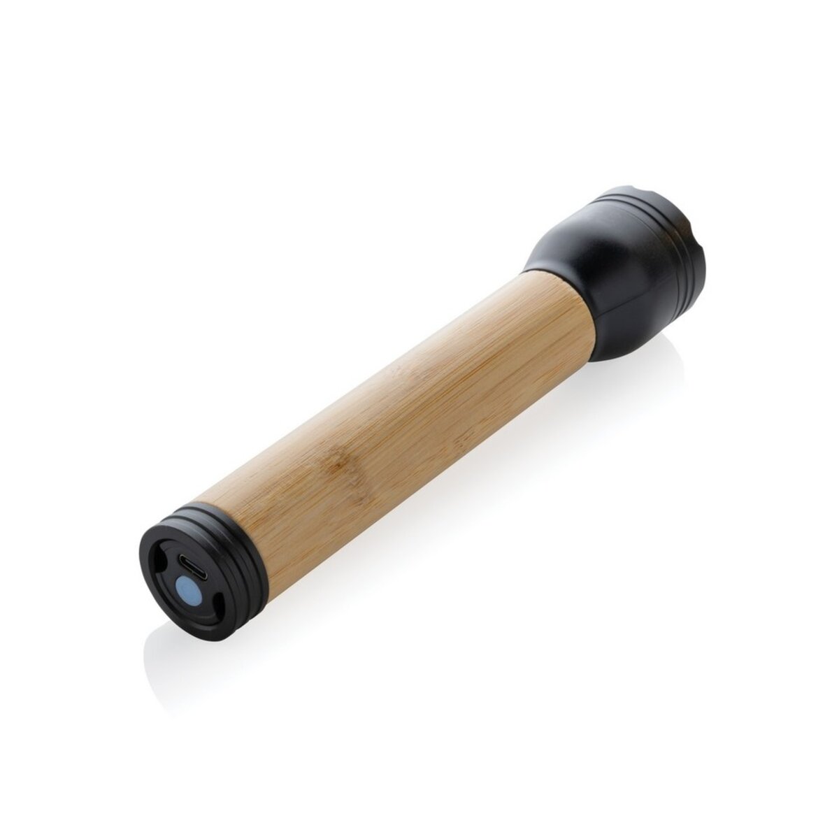 Budowa latarki z materiałów ekologicznych takich jak ABS z recyklingu i bambus certyfikowany przez FSC® świadczy o jej przyjaznym profilu dla środowiska. W dodatku, latarka ma wbudowany akumulator o pojemności 1800 mAh, który zapewnia do 6 godzin świecenia i ładowanie za pomocą wejścia USB C. Zestaw zawiera również kabel z TPE z recyklingu również z certyfikatem RCS. 🌱