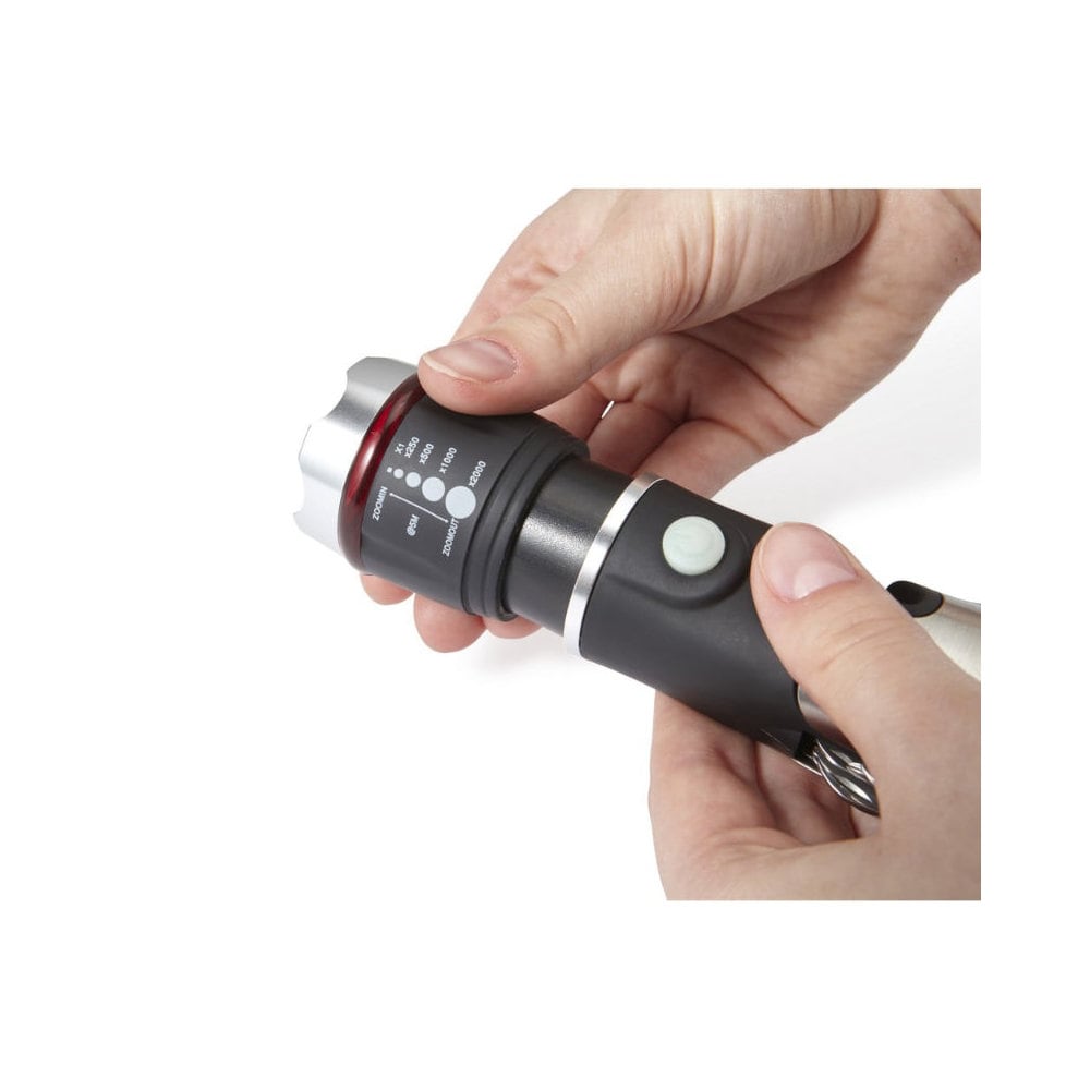 Nasza Latarka bezpieczeństwa to idealne rozwiązanie dla każdego, kto chce mieć dostęp do skutecznego źródła światła w trudnych warunkach. Latarka jest wyposażona w jasny, skuteczny reflektor, który pozwoli Ci zobaczyć drogę w ciemności lub w gęstych zaroślach. Latarka wyposażona jest również w przecinak do pasów, który pozwoli Ci szybko i skutecznie rozciąć zablokowane pasy bezpieczeństwa w samochodzie. Młotek bezpieczeństwa jest niezbędnym narzędziem do szybkiego i skutecznego uwolnienia się z klatki bezpieczeństwa samochodu w wypadku wypadku lub innej sytuacji zagrożenia. Na końcu znajduje się nóż kieszonkowy, który daje Ci dodatkową ochronę i pozwala Ci szybko otworzyć skrzynki, drzwi, zamki itp. Ten produkt może być niezbędny w nagłych sytuacjach, dlatego gorąco zalecamy jego zakup.