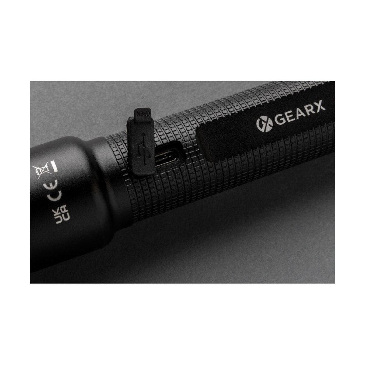 Model Gear X wyróżnia się wodoodpornością IP4 oraz bardzo jasnym światłem o mocy 10W, które osiąga 800 lumenów. Zasięg wiązki światła sięga aż do 5000 metrów, a wyjątkowy zestaw pięciu trybów świecenia, w tym trybu SOS, sprawia, że latarka jest niezastąpiona w awaryjnych sytuacjach. Dzięki wbudowanemu akumulatorowi o pojemności 2000 mAh, urządzenie może świecić ciągle przez około 8 godzin.