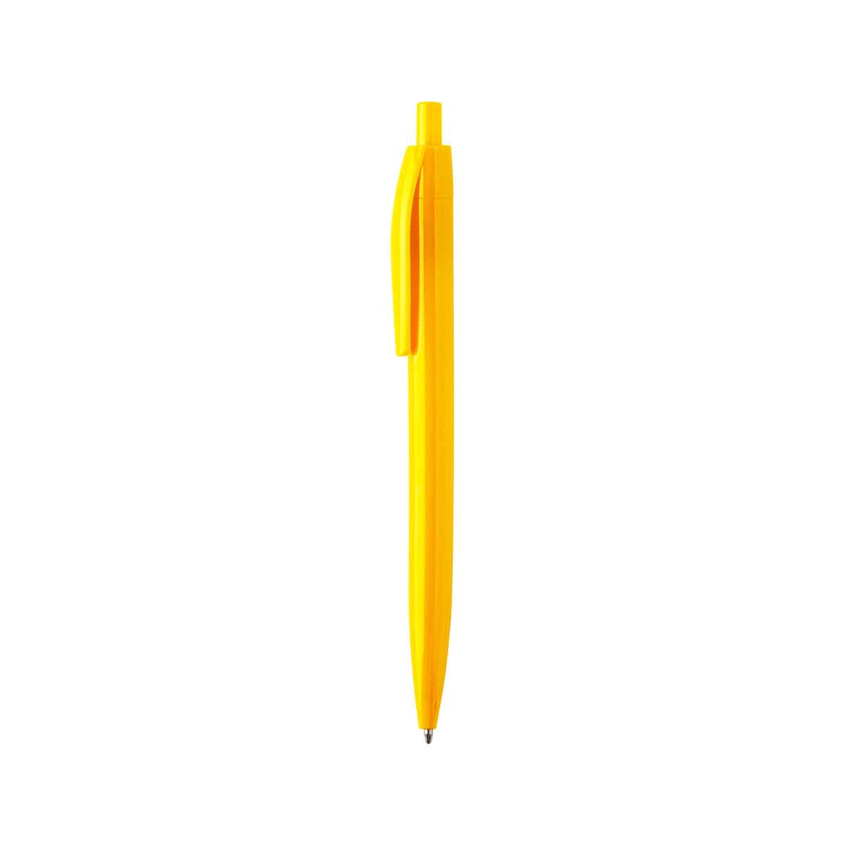 Długopis wyposażono w wygodny mechanizm pchający, lekki – waży zaledwie 9 g – oraz poręczny (ø10×138 mm), więc nie sprawi problemów podczas wielogodzinnego notowania. Niebieski wkład zapewnia płynny i wyraźny zapis. Bogata paleta kolorów – żółty, pomarańczowy, ciemnoniebieski, czarny, czerwony, biały, zielony, jasnoniebieski – ułatwia dopasowanie barwy do identyfikacji wizualnej Twojej marki, a gładka powierzchnia umożliwia trwały nadruk wielokolorowy. To znakomity nośnik logo, dzięki któremu zwiększysz rozpoznawalność i prestiż.