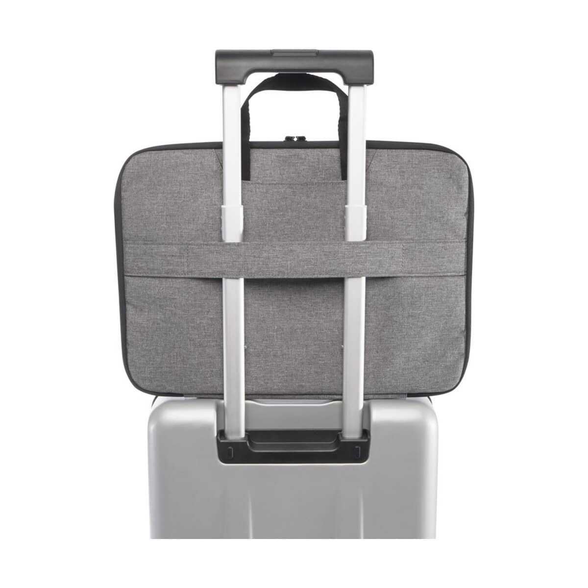 Dwufunkcyjna konstrukcja to prawdziwy atut: dzięki chowanym uchwytom parcianym szybko przekształcisz torbę w płaskie etui, co sprawia, że Libra etui na laptopa 2 w 1 o pojemności 3 l wykonane z materiałów z recyklingu z certyfikatem GRS jest tak samo praktyczne w pociągu, jak i przy kontroli bezpieczeństwa na lotnisku – zamek rozkładany o 180° pozwala błyskawicznie rozłożyć zawartość. Wewnątrz znajdziesz neoprenową kieszeń chroniącą laptop do 15,6”, dwie kieszenie z siatki na akcesoria oraz dwie otwarte przegródki na dokumenty.