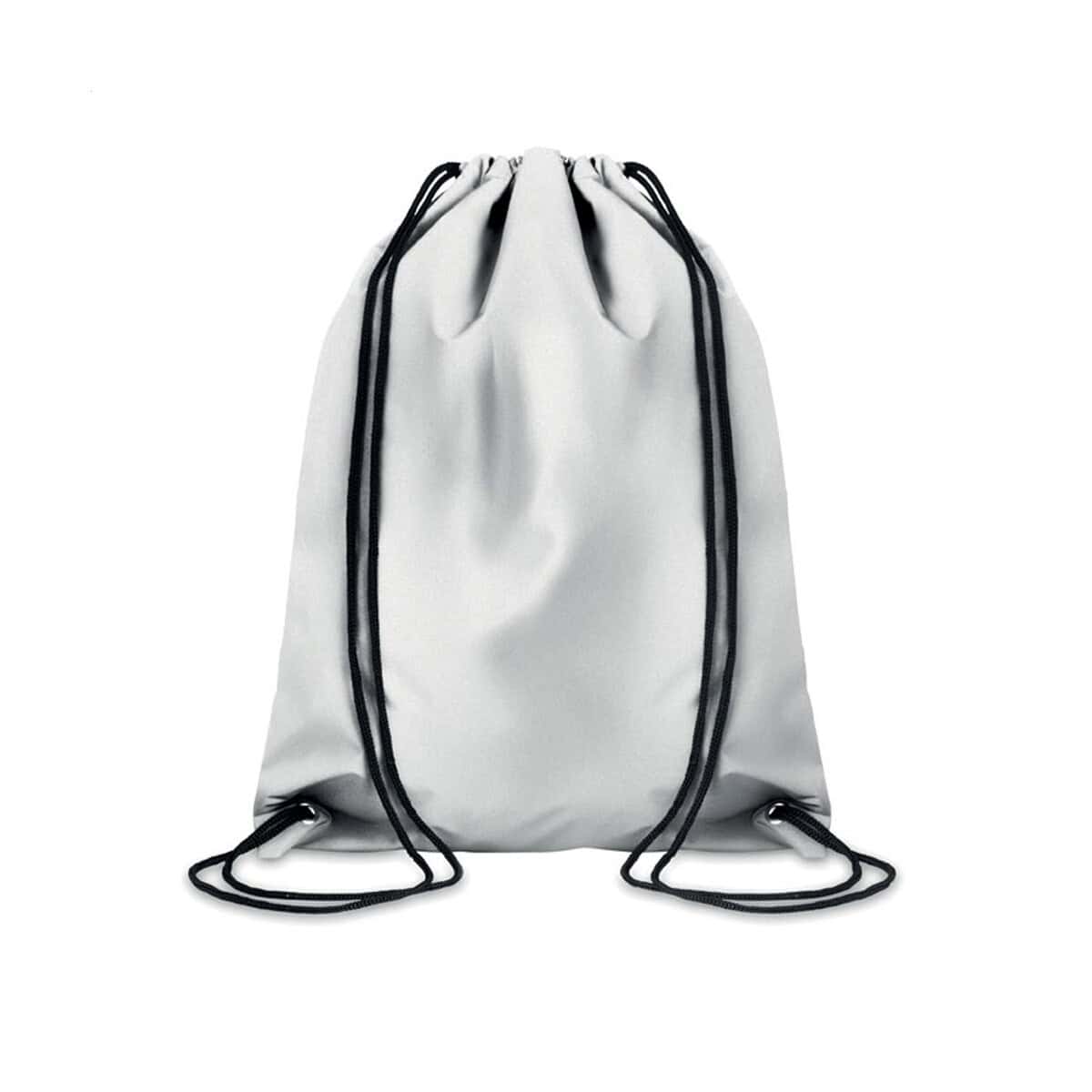 Produkt przeznaczony wyłącznie do celów promocyjnych i nie kwalifikuje się jako sprzęt ochrony osobistej, jednak jego właściwości odblaskowe znacząco poprawiają widoczność użytkownika po zmroku. Srebrna tafla materiału przyciąga wzrok, a solidne sznurki zapewniają komfort noszenia na plecach lub ramieniu.