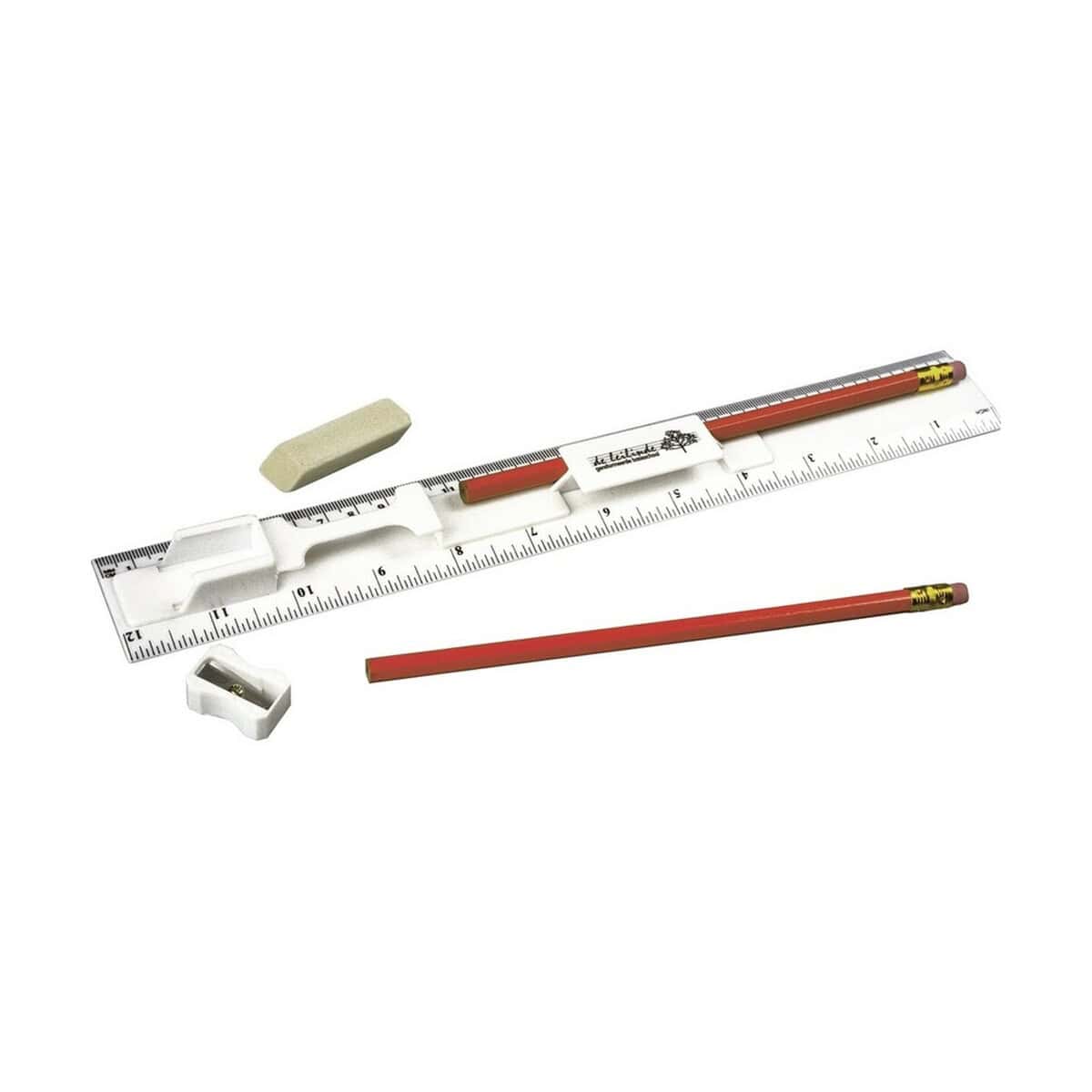 Zestaw zawiera linijkę o długości 30 cm/12 cali, dwa drewniane ołówki HB, poręczną temperówkę oraz elastyczną gumkę do ścierania. Dzięki temu każdy odbiorca otrzymuje komplet narzędzi niezbędnych do kreślenia, szkicowania i notowania. Linijka, 2 ołówki, temperówka, gumka sprawdzi się w promocji firm z branży architektonicznej, szkoleniowej, budowlanej, księgowej, a także wśród agencji kreatywnych oraz uczelni wyższych. To znakomity wybór dla Twojej firmy, jeśli zależy Ci na praktycznym upominku, który pozostanie na biurku klienta przez długi czas.