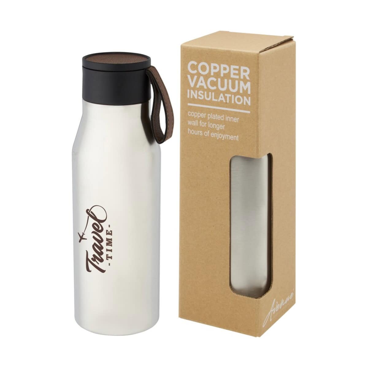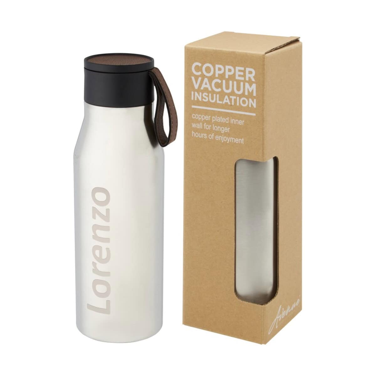 Ljungan Miedziana, izolowana próżniowo butelka ze stali nierdzewnej o pojemności 500 ml z paskiem ze skóry PU i pokrywką to znakomity wybór, gdy poszukujesz efektownego nośnika na logo oraz eleganckiego upominku reklamowego. Jej klasyczna sylwetka (22,9 cm wysokości, Ø 7,4 cm) i lekka waga 275 g sprawiają, że doskonale leży w dłoni, a wbudowany pasek ze skóry PU dodaje stylu i ułatwia przenoszenie. Podwójne ścianki z miedzianą powłoką i izolacją próżniową zapewniają, że kawa pozostaje gorąca nawet przez 8 h, a woda – przyjemnie chłodna do 24 h. 🙂