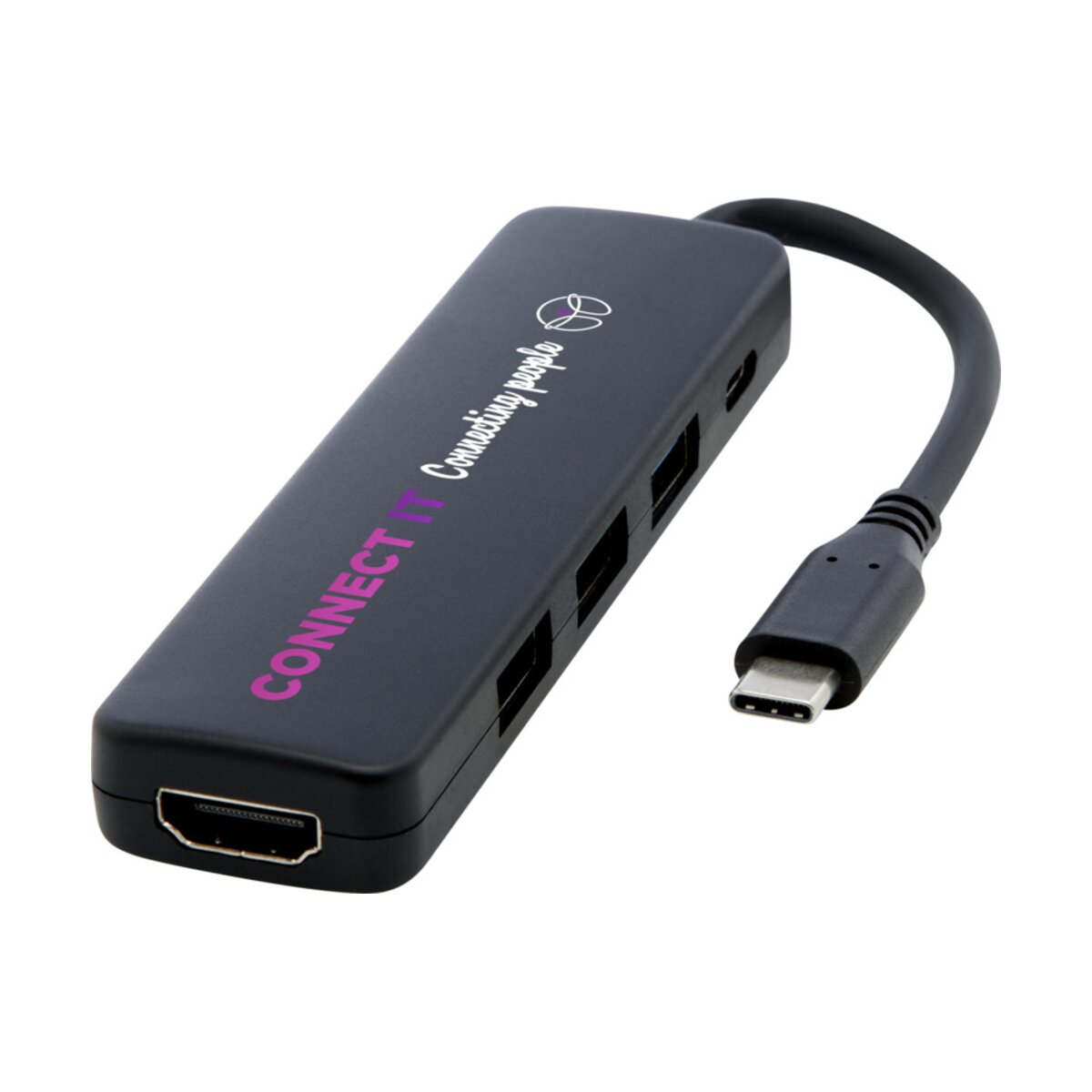 Loop adapter multimedialny RCS USB typu C oferuje rozwiązanie dla każdego wyzwania dzięki różnorodnym portom. Podłącz mysz i klawiaturę do 2 portów USB 2.0, kopiuj duże pliki z dużą szybkością przez port USB 3.0 lub typu C i/lub podłącz laptopa do zewnętrznego monitora / telewizora / rzutnika za pomocą zintegrowanego wyjścia HDMI z obsługą wideo do góry do rozdzielczości 4K. Dostarczany z instrukcją obsługi w pudełku z papieru Kraft pochodzącym w 100% z recyklingu.