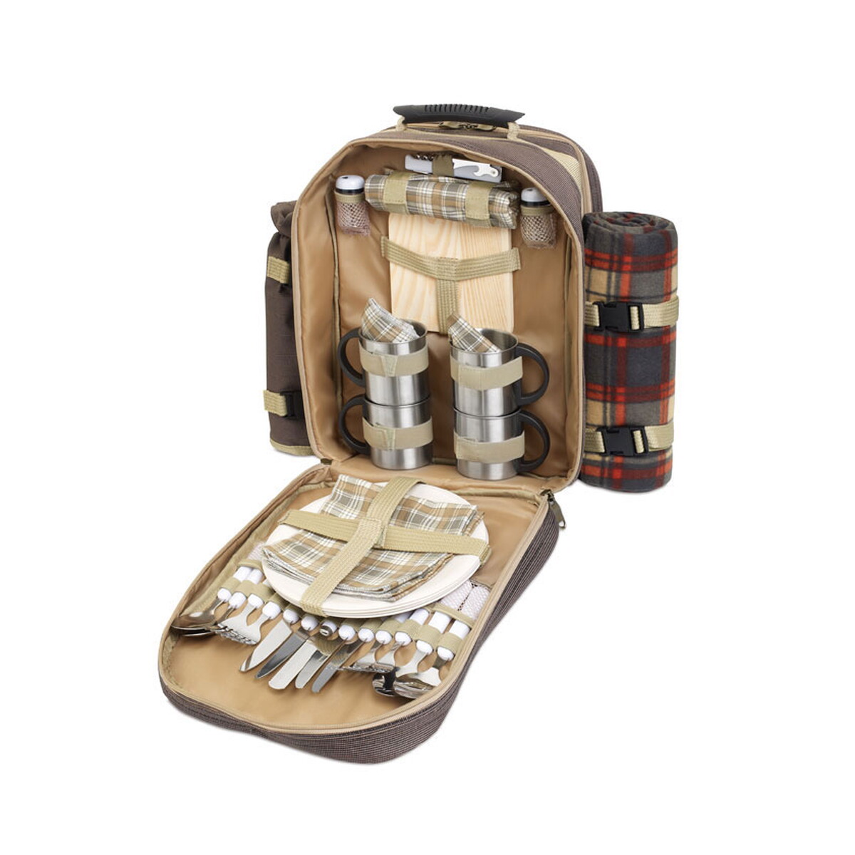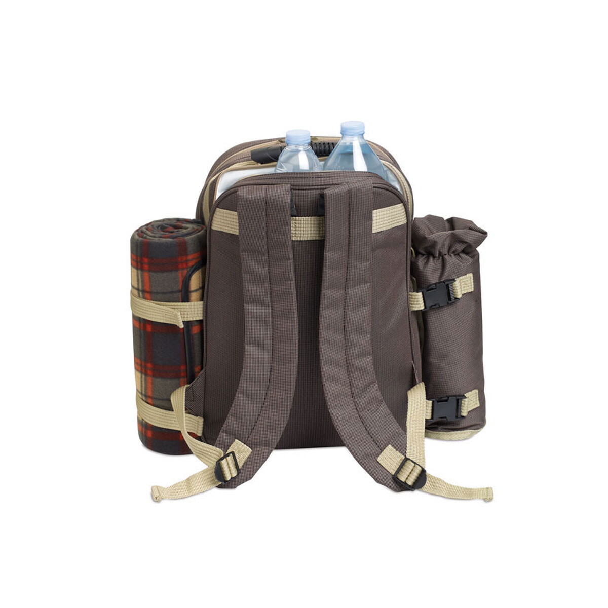 Luksusowy piknikowy plecak HIGH PARK to nie tylko zwykły plecak – to prawdziwie ekskluzywny gadżet promocyjny, który przeniesie każde spotkanie na świeżym powietrzu na wyższy poziom komfortu 😊. Wykonany z trwałego polyesteru 600D, o wymiarach 27x22x40 cm i wadze zaledwie 2,784 kg, kryje w sobie miękki koc piknikowy, odpinany uchwyt na butelkę oraz komplet solidnych akcesoriów stołowych dla czterech osób. Dzięki przytulnemu, brązowemu odcieniowi i starannemu wykończeniu model ten natychmiast przyciąga wzrok, stając się stylowym elementem każdej wycieczki.