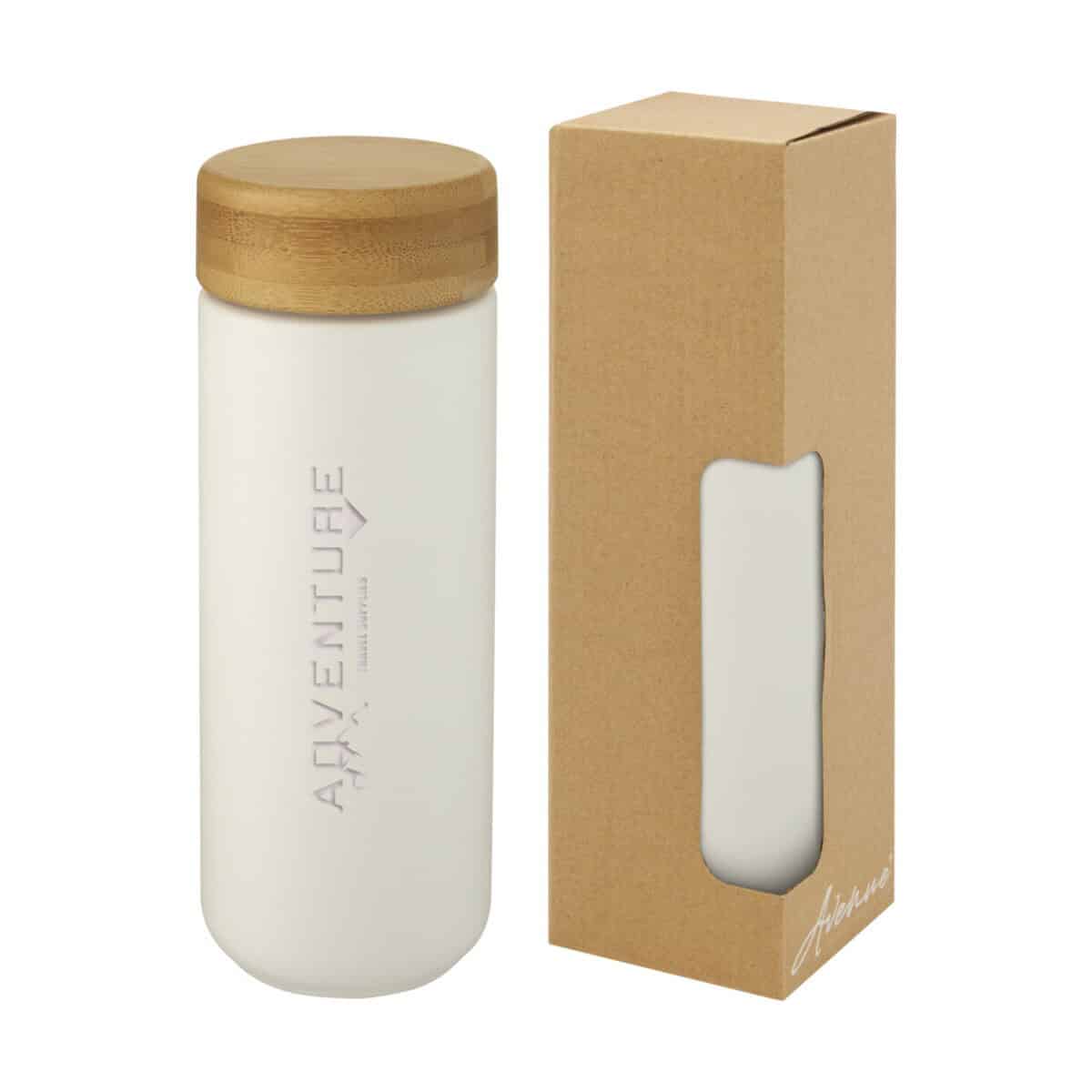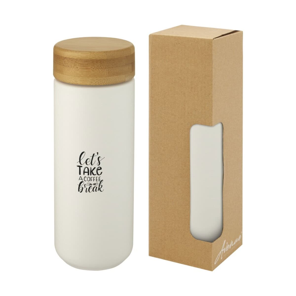 Lumi ceramiczny kubek z bambusową pokrywką o pojemności 300 ml to wyjątkowo elegancki i funkcjonalny gadżet 😊, który wyróżni każdą kampanię reklamową. Dzięki dwuściennej konstrukcji ceramicznej napoje dłużej utrzymują temperaturę, a zewnętrzna ścianka pozostaje przyjemnie chłodna. Pokrywka z naturalnego bambusa, pozyskiwanego w sposób zrównoważony, chroni przed rozlaniem i dodaje ekologicznego charakteru, co czyni produkt doskonałym wyborem dla Twojej firmy, która ceni świadomą odpowiedzialność.
