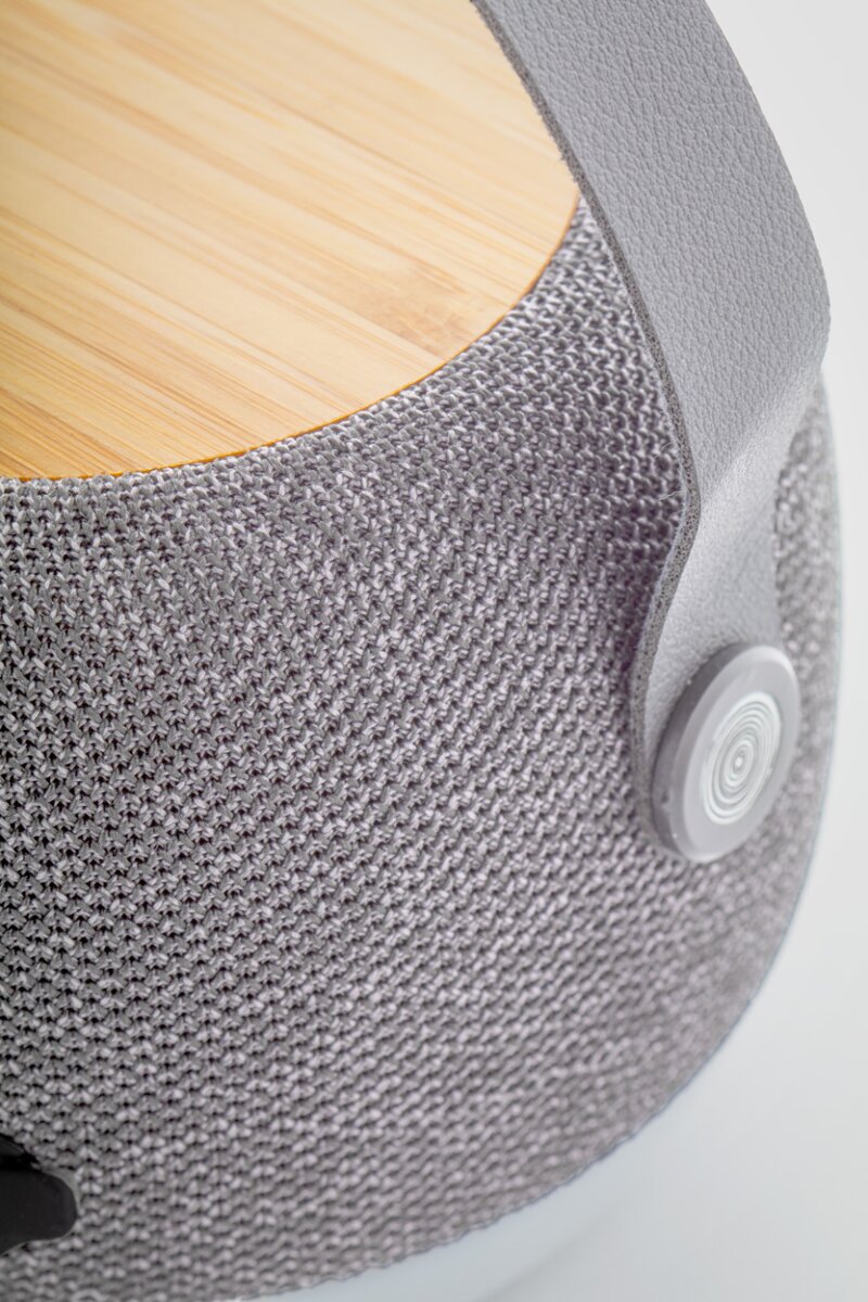 Lumifi głośnik bluetooth jest wyposażony w obudowę pokrytą tkaniną RPET, co czyni go przyjaznym dla środowiska wyborem. Solidność zapewnia również wykorzystanie tworzywa ABS pochodzącego z recyklingu. Dopełnieniem ekologicznego charakteru jest bambusowa szybka ładowarka indukcyjna o mocy 15 W zlokalizowana na górze urządzenia.