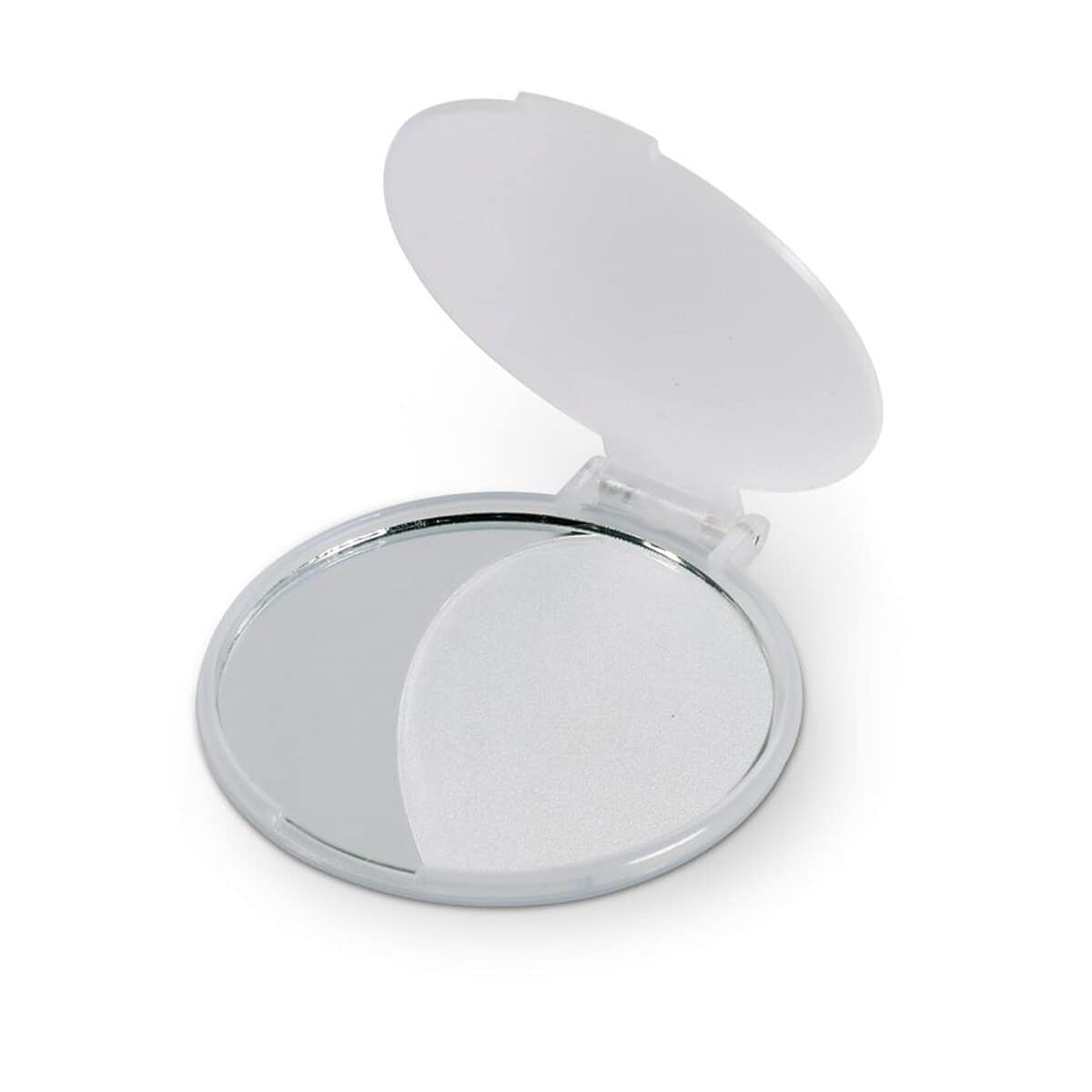 Lusterko do makijażu MIRATE to niewielki, lecz niezwykle praktyczny gadżet, który wprowadzi nutę elegancji do każdej kosmetyczki i torebki. Jednostronna tafla w plastikowej obudowie zapewnia przejrzysty obraz, dzięki czemu makijaż oraz szybkie poprawki w ciągu dnia stają się czystą przyjemnością 😊. Jego kompaktowe wymiary: ø6×0,5 cm oraz niewielka waga: 0,018 kg czynią z niego produkt doskonały na eventy, konferencje i akcje promocyjne. Transparentno-biały odcień obudowy subtelnie eksponuje każde logo, a gładka powierzchnia sprzyja wysokiej jakości nadrukowi.