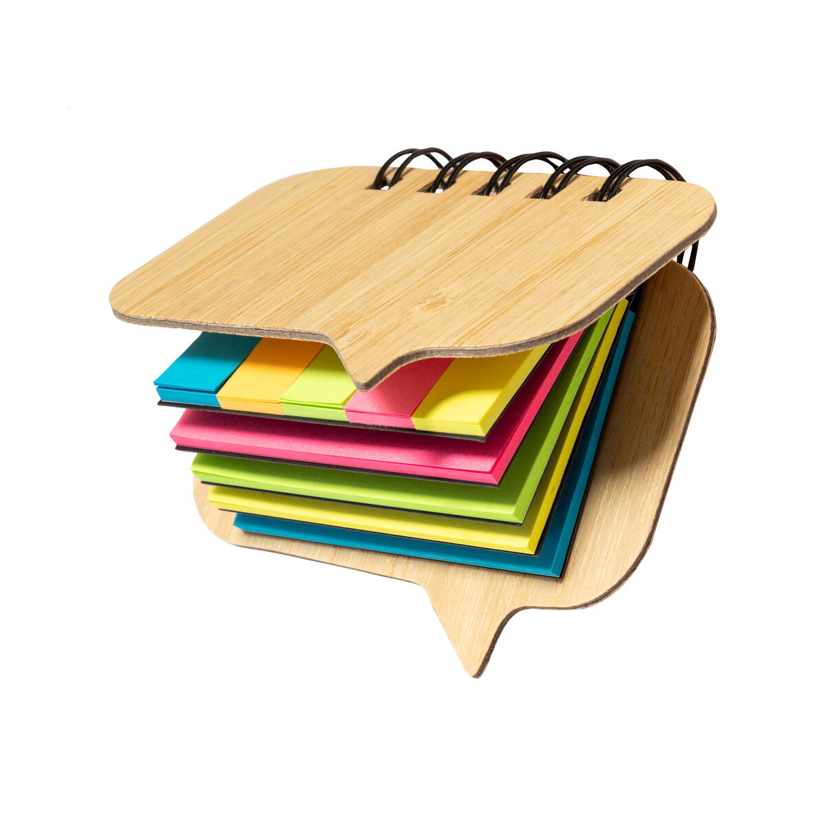 W środku znajduje się aż 100 dużych karteczek samoprzylepnych w czterech intensywnych kolorach oraz 125 zakładek w pięciu barwach, co ułatwia organizację informacji. Wymiary 85 × 108 × 25 mm i niewielka waga 74 g powodują, że notes mieści się w każdej torbie czy kieszeni marynarki. Naturalny materiał: bambus jest nie tylko trwały, lecz także przyjazny dla środowiska, a ciepły odcień okładki doskonale kontrastuje z firmowym logo, podkreślając ekologiczne podejście marki.