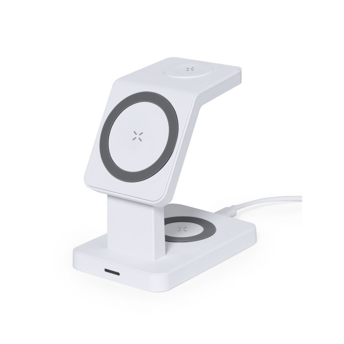 Technologia magnetycznego trzymania zapewnia stabilność i bezpieczeństwo ładowanego sprzętu. Dodatkowo, trzy cewki ładowania (15W, 5W, 2.5W) pozwalają na szybkie i efektywne ładowanie, zgodnie z potrzebami różnych urządzeń. Dzięki wejściu USB-C ładowarka jest kompatybilna z najnowszymi modelami smartfonów.