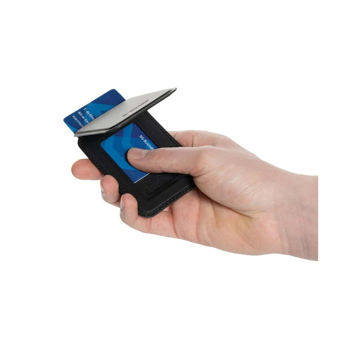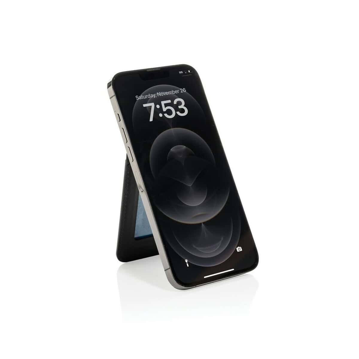 Magnetyczny portfel Magstand RPU, stojak na telefon to nowoczesny, multifunkcyjny gadżet, który zaskakuje sprytnym połączeniem kompaktowego portfela i stabilnego stojaka. Jego smukły format 6,6 × 1 × 10 cm oraz niewielka waga 68 g sprawiają, że zawsze znajdzie miejsce w kieszeni, torebce czy plecaku. Wykonany w 5% z recyklingowanego RPU, stanowi świadomy wybór dla wszystkich ceniących ekologię 🙂. Czarny, elegancki kolor prezentuje się ponadczasowo i perfekcyjnie eksponuje firmowe logo lub wyrazisty nadruk.