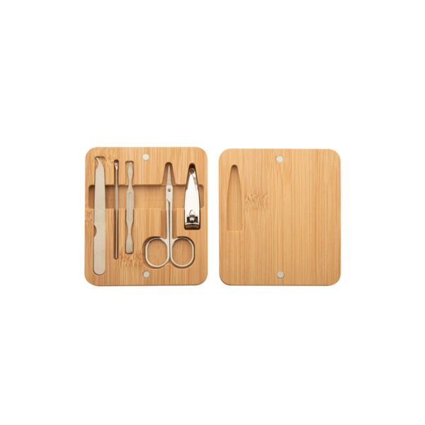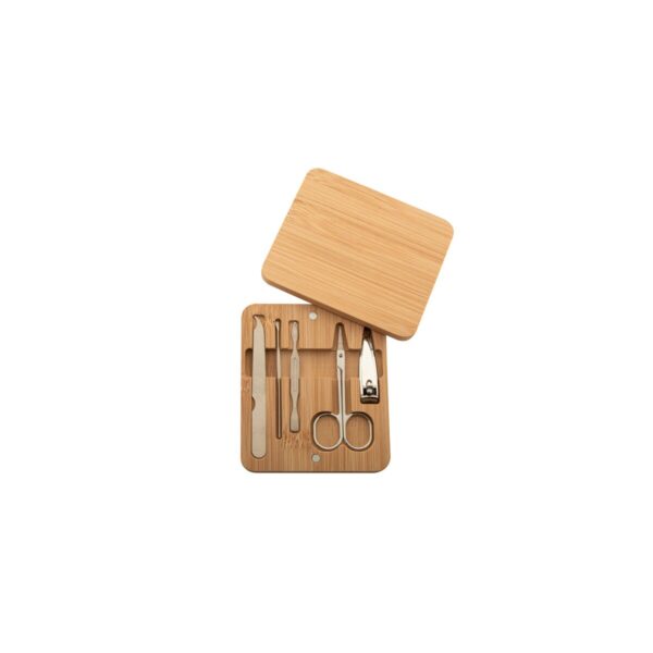 Prezentowany produkt zamknięty jest w eleganckim etui wykonanym z bambusa, którego unikalna tekstura i kolorystyka odznacza się naturalnością. Dodatkowo, magnetyczne zamknięcie pokrywy gwarantuje, że wszystkie elementy zestawu pozostaną na swoim miejscu. Wymiary etui to 115×100×21 mm, co sprawia, że zestaw jest kompaktowy i idealny do zabrania w podróż.