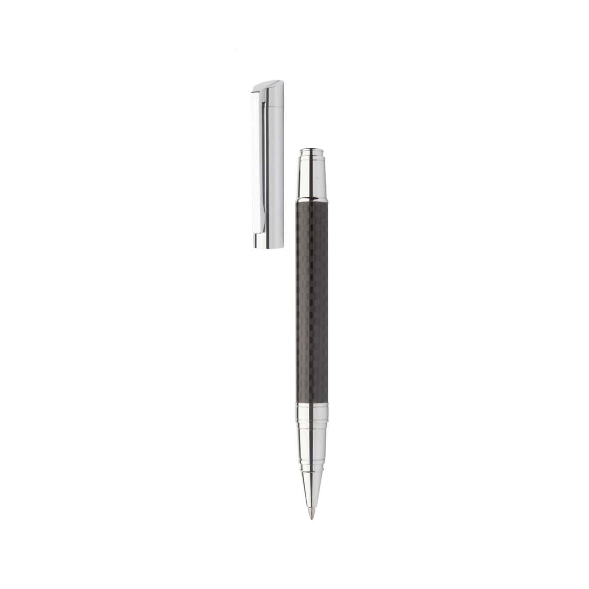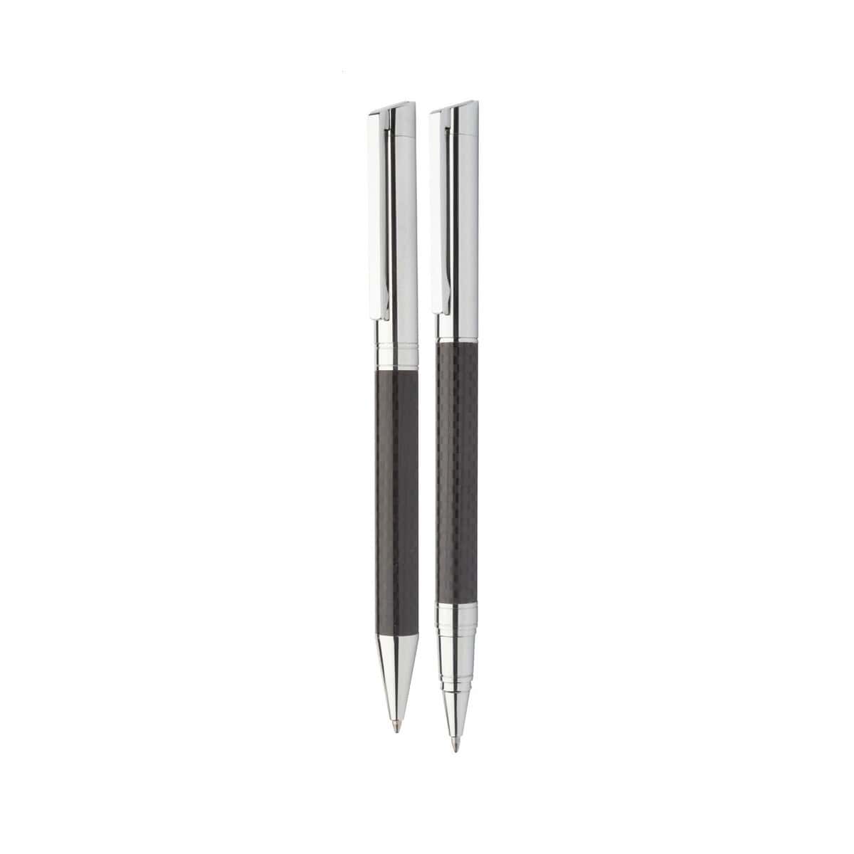 Mantilly zestaw długopisów to prawdziwie prestiżowy gadżet, który z powodzeniem podkreśli klasę każdej marki 😊. Składa się z eleganckiego długopisu oraz pióra kulkowego wykonanych z wytrzymałego Metalu, ozdobionych karbonowym wzorem na smukłym korpusie i wykończonych błyszczącymi, chromowanymi detalami. Całość mieści się w czarnym pudełku upominkowym o wymiarach 190×83×38 mm i wadze jedynie 228 g, co czyni go znakomitym prezentem premium na wydarzenia branżowe i jubileusze firmowe.