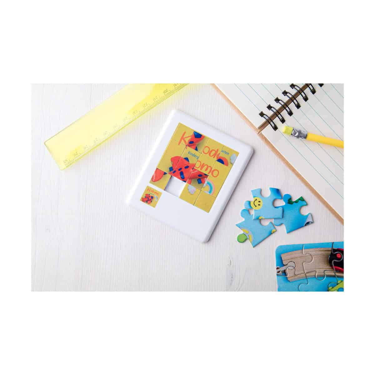Melanie mini puzzle to niewielka, lecz niezwykle pomysłowa układanka, która wprowadzi odrobinę zabawy do każdej kampanii promocyjnej 😊. Plastikowa gra o wymiarach 75×90×6 mm i wadze zaledwie 25,2 g powstała z wysokiej jakości plastiku w eleganckim białym kolorze. Dzięki gładkiej powierzchni oraz prostemu kształtowi, produkt idealnie nadaje się pod trwały nadruk, pozwalając wyeksponować Twoje logo w widocznym miejscu. Lekka konstrukcja sprawia, że to praktyczny gadżet, który z łatwością zmieści się w kieszeni lub torbie konferencyjnej.