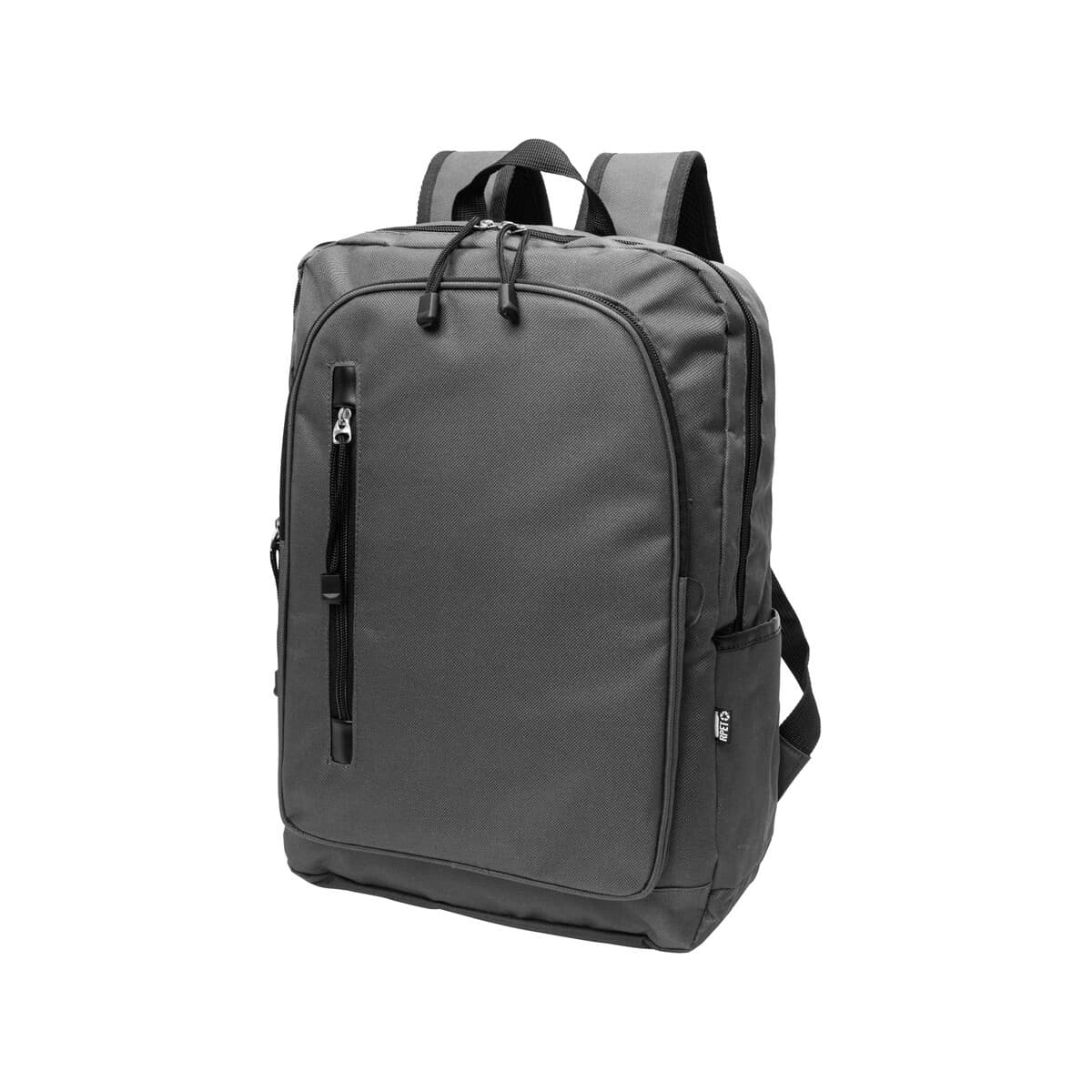 Przemyślany projekt zachwyca praktycznością: główna komora na suwak pomieści dokumenty, segregatory i akcesoria, a wyściełana przegroda na laptop 15” zapewni bezpieczeństwo sprzętu. Dwie kieszenie z przodu na suwak ułatwią organizację drobiazgów, a boczne kieszenie zmieszczą bidon lub parasolkę. Wyściełany tył i regulowane, miękkie paski na ramiona gwarantują komfort nawet przy pełnym obciążeniu, zaś charakterystyczna metka RPET dyskretnie podkreśla proekologiczny charakter produktu.