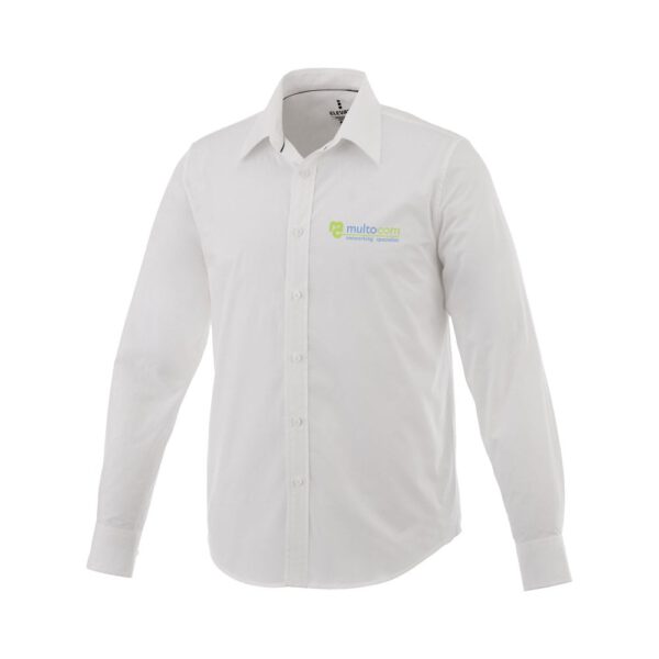 Ten wyjątkowy kołnierzyk button down wykonany jest z elastycznego materiału dla maksymalnego komfortu. Wyposażony jest w regulowane mankiety z pojedynczą plisą oraz satynową lamówką w karku. Dodatkowo guziki z wygrawerowanym logo w kolorze materiału zapewniają elegancki wygląd. Metka wdrukowana transferem zapobiega drażnieniu skóry. Ten stylowy kołnierzyk z ukrytymi guzikami sprawdzi się w wielu stylizacjach.