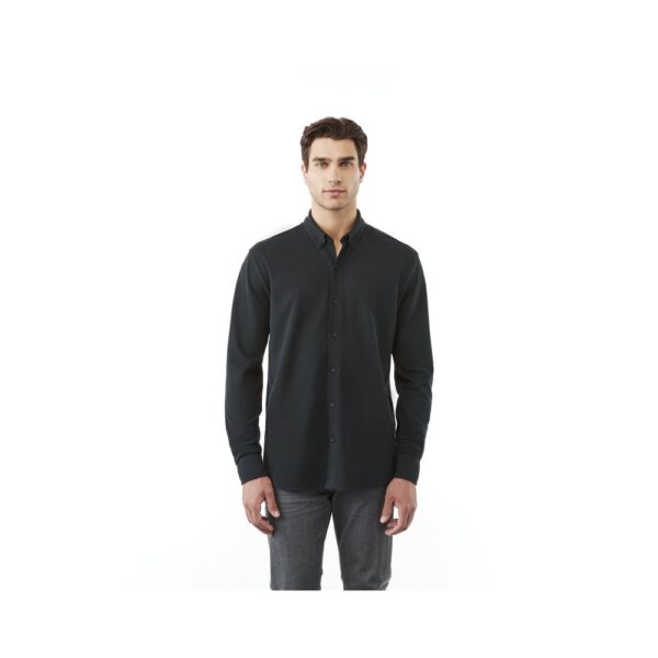 Ten kołnierzyk to must-have dla każdego, kto ceni dobrą jakość w modzie. Wykonany z elastycznego materiału, jest wygodny i idealnie dopasowuje się do szyi. Regulowany mankiet z pojedynczą plisą dodaje stylowego akcentu całemu strojowi. Kołnierzyk button-down i satynowa lamówka wewnątrz na karku czynią ten produkt wyjątkowym. Ostatecznym detalem jest logo w kolorze materiału wygrawerowane na guzikach. Dodatkowo, wszystkie guziki są zabezpieczone tkanym metką.