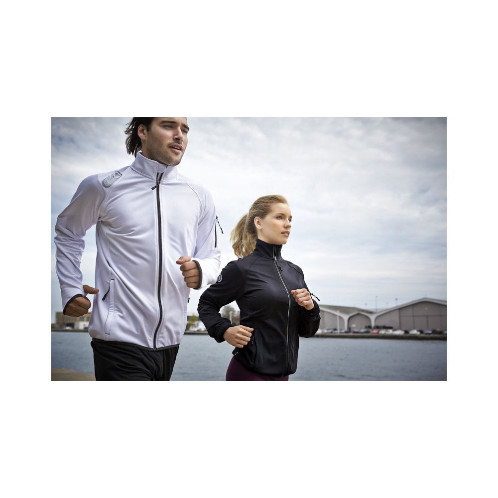 Ten spodnie treningowe to połączenie wytrzymałości, funkcjonalności i wygody. Wykonane z materiału rozciągającego się w 4 strony (4-way stretch) zapewniają optymalny komfort podczas wykonywania ćwiczeń. Otwory na kciuki i elastyczne ściągacze zapobiegają przesuwaniu się spodni. Przednie kieszenie i kieszeń na rękawie na zamek są idealne do przechowywania drobnych przedmiotów. Wewnętrzna kieszonka na odtwarzacz muzyki umożliwia wygodne słuchanie muzyki podczas treningu. Zakładka sztormowa z blokadą chroniącą przed przycięciem podbróbka i półksiężyc w kontrastowym kolorze z satynową taśmą wzmacniającą w kołnierzyku zapewniają wyjątkowy wygląd. Odblaskowe wykończenia sprawiają, że spodnie są odpowiednie do treningu nocą.