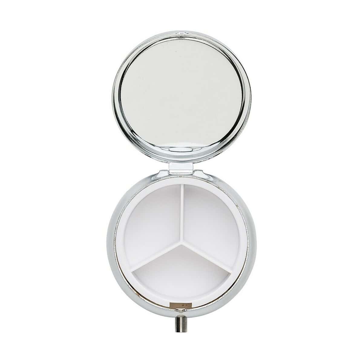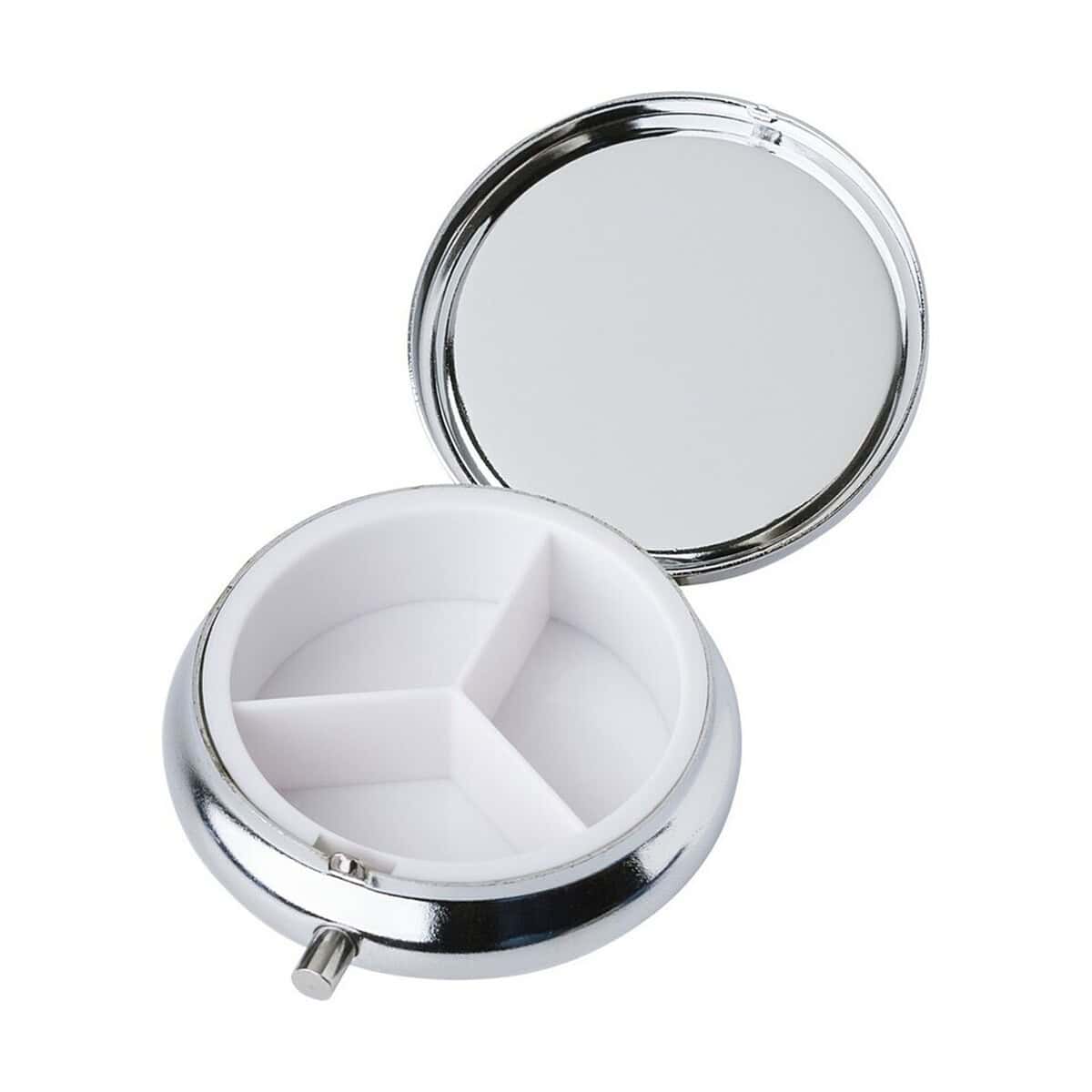 Metalowy pojemnik na tabletki z 3 przegrodami, lusterko