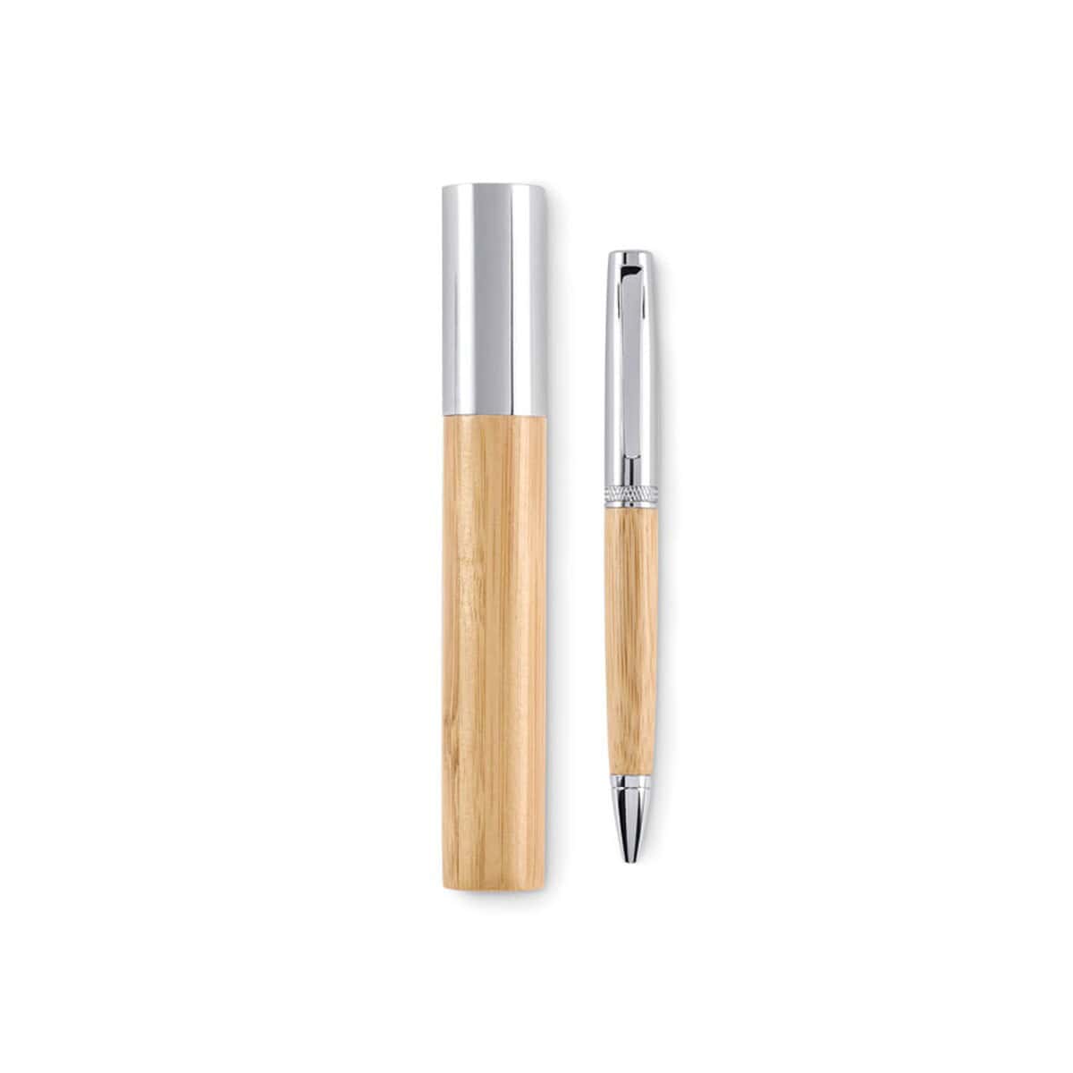 Precyzyjne wymiary 2,3øx15,5 cm oraz waga zaledwie 0,058 kg czynią go niezwykle poręcznym, a jednocześnie solidnym. W zestawie znajduje się bambusowe etui z elegancką aluminiową pokrywą, tworząc spójną całość, którą można ozdobić indywidualnym nadruk lub logo. Dzięki zastosowaniu niebieskiego tuszu zapis jest wyraźny i przyjemny dla oka – doskonały do codziennej pracy biurowej czy podpisywania ważnych dokumentów.