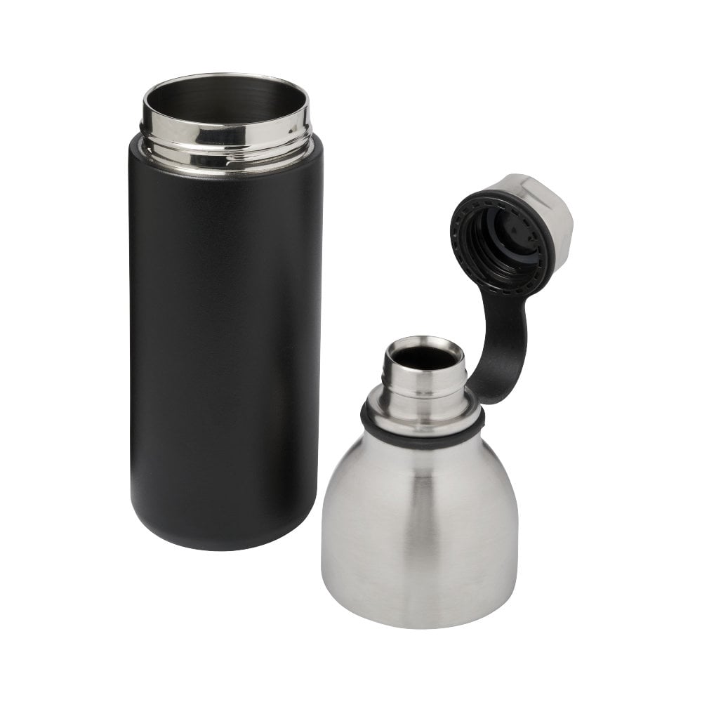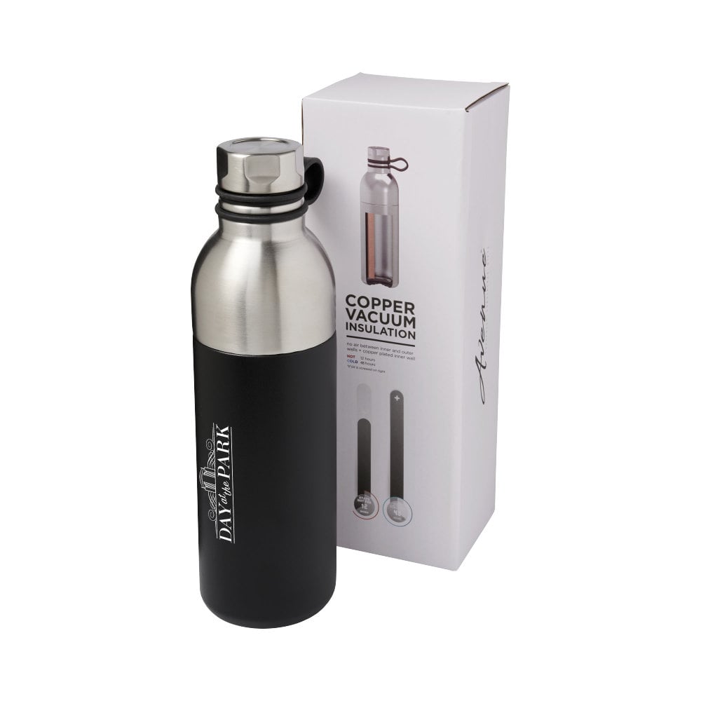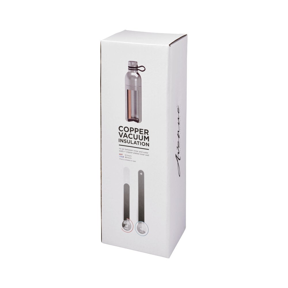 Ta dwuwarstwowa próżniowa konstrukcja to wymarzone rozwiązanie dla wszystkich fanów zimnych napojów. Wykonana z wytrzymałej stali nierdzewnej z miedzianą izolacją, zapewnia utrzymanie niskiej temperatury napoju przez 48 godzin, a wysokiej przez co najmniej 12 godzin. Konstrukcja pozwala również uniknąć kondensacji na zewnątrz butelki. Została wyposażona w zakręcaną górną pokrywę ze stali nierdzewnej oraz wygodną silikonową pętlę do przenoszenia. Otwierana z dwóch stron konstrukcja ułatwia czyszczenie i napełnianie. Pojemność 590ml. Produkt zapakowany jest w pudełko upominkowe Avenue.