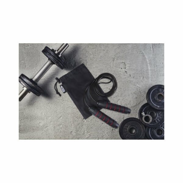 Profesjonalna skakanka dla dorosłych to idealny dodatek do treningów siłowych, który oferuje wygodny chwyt dzięki ergonomicznie ukształtowanym uchwytom z miękkiej pianki. Lina o długości 310 cm pozwala na łatwe skakanie osobom o wzroście do 195 cm. Regulacja długości liny oraz wbudowane wysokiej jakości, obracane o 360°, szybkie łożysko kulkowe zapewnia płynny obrót bez wysiłku, zapobiegając plątaniu się liny. Do zestawu dołączony jest woreczek do przechowywania (21 x 14 cm) wykonany z plastiku PET z recyklingu, który oferuje doskonałą powierzchnię do nadruku logo.