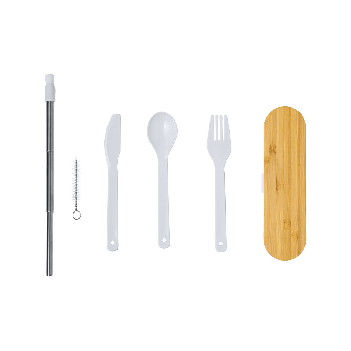 Produkt został wykonany z trwałych materiałów – plastiku PP i stali nierdzewnej, które zapewniają długowieczność i bezpieczeństwo użytkowania. Dodatkową atrakcją zestawu jest bambusowe pudełko z pokrywką, idealne do przechowywania sztućców lub ich eleganckiego prezentowania na stole. Komplet niewątpliwie zachwyci wszystkich miłośników naturalnych akcentów w aranżacji wnętrz.