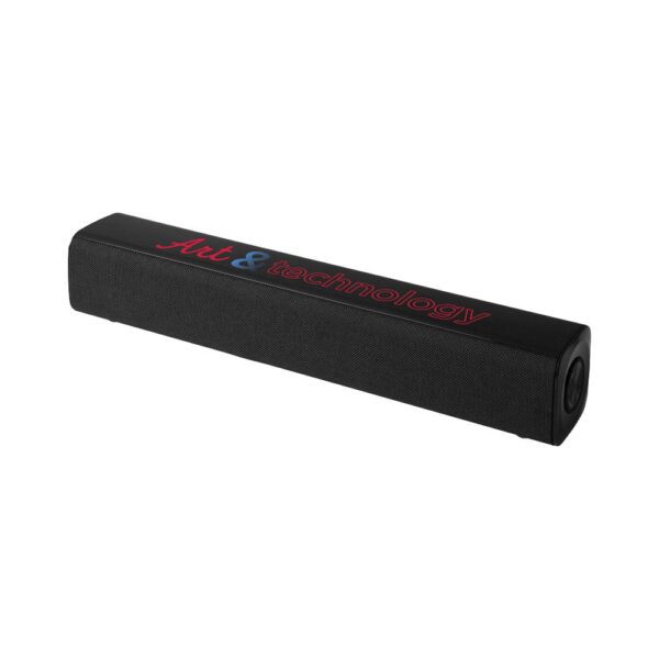 Mini soundbar Vibrant Bluetooth® to idealny dodatek do domowego systemu rozrywki. Łatwo go podłączyć do telewizora przy pomocy Bluetooth®, kabla 3,5 mm Aux (w zestawie) lub kabla RCA (w zestawie). Jego niewielkie rozmiary ułatwiają korzystanie z laptopa, smartfona lub tabletu w podróży. Pasywny radiator wzmacnia jakość dźwięku w porównaniu z większością standardowych głośników Bluetooth®. Umożliwia to uzyskanie doskonałej jakości dźwięku za rozsądną cenę. Do zestawu dołączony jest kabel micro USB. Czas odtwarzania wynosi trzy godziny, a czas ładowania dwie godziny. Moc wynosi 5 W x 2.