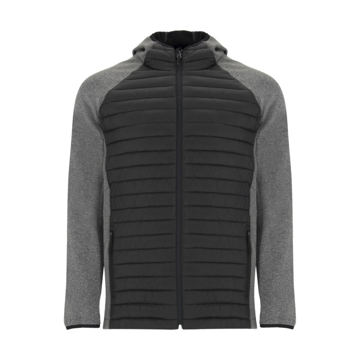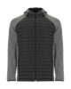 Męska kurtka z kombinacji dwóch materiałów: Regulowany kaptur. Raglanowe rękawy. Rękawy, panele boczne i kaptur z materiału softshell. Pikowany materiał przypominający w dotyku pierze z przodu i z tyłu. Odwrócony zamek błyskawiczny z pasującym ochraniaczem podbródka i ściągaczem. Dwie przednie kieszenie z zamkami błyskawicznymi. Dopasowane elastyczne wykończenie kołnierza, mankietów i dołu bluzy. Usuwalna metka. Model wiatroszczelny.