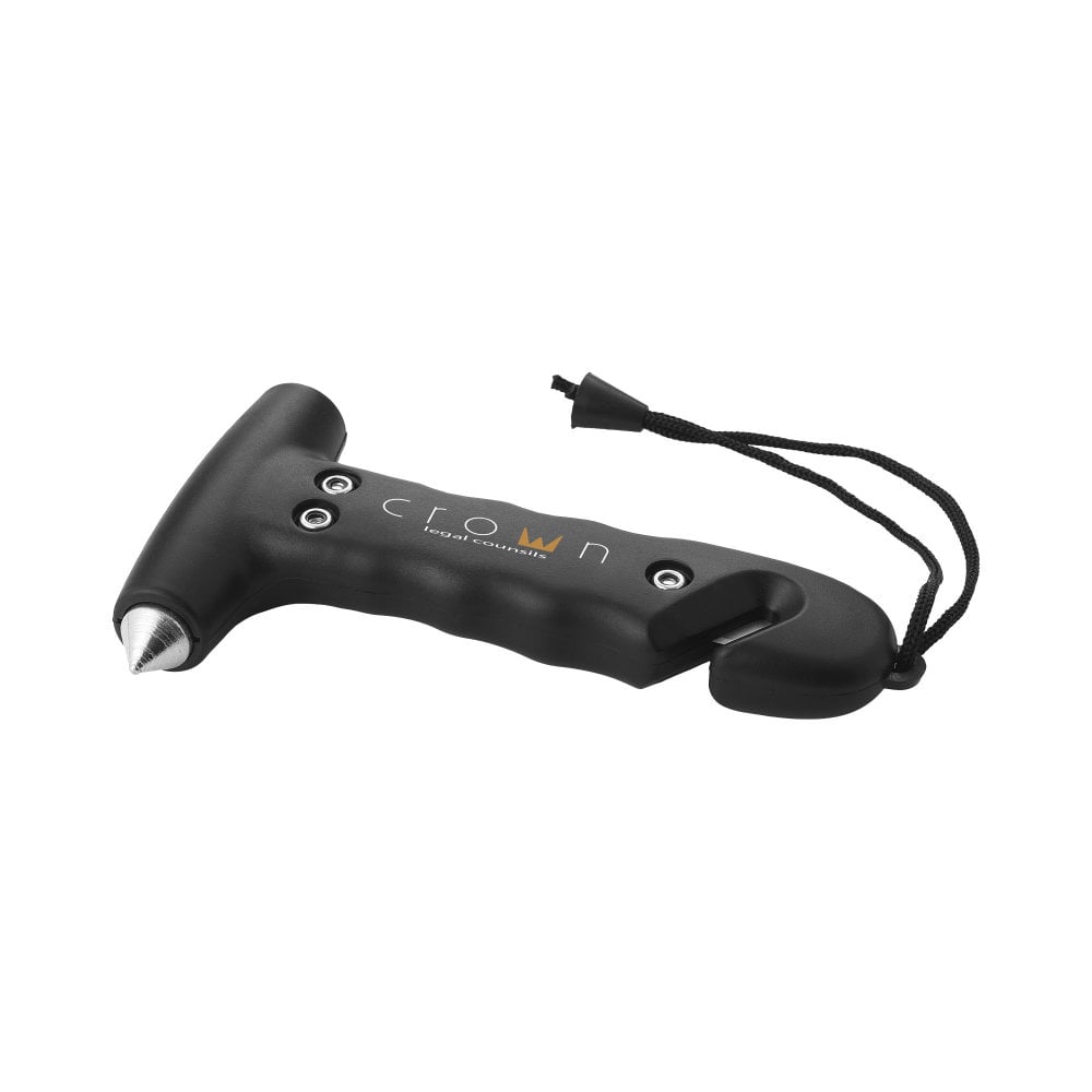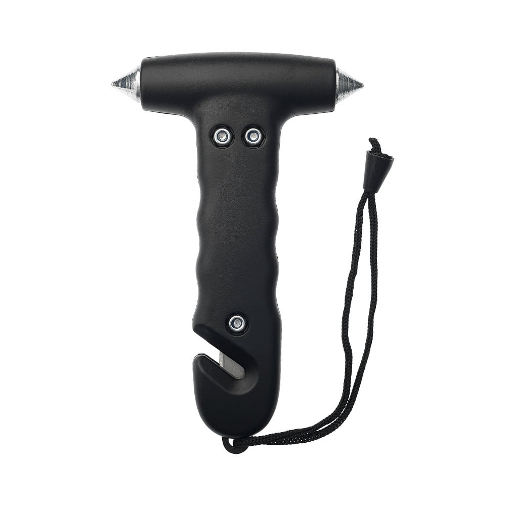 Młotek ratunkowy to wysoce praktyczne narzędzie, które może pomóc w sytuacjach alarmowych. Posiada on pasek na nadgarstek, dzięki czemu jest łatwy do trzymania i wyrzucenia, gdy potrzebny jest szybki dostęp. Wygodna rękojeść zawiera wbudowany przecinak do pasów, co czyni go jeszcze bardziej użytecznym narzędziem w krytycznych momentach. W sytuacji awaryjnej można także skorzystać z dwóch ostrego wybijaków do okien ze stali hartowanej, które pozwalają w szybki i bezpieczny sposób wydostać się z pomieszczenia.