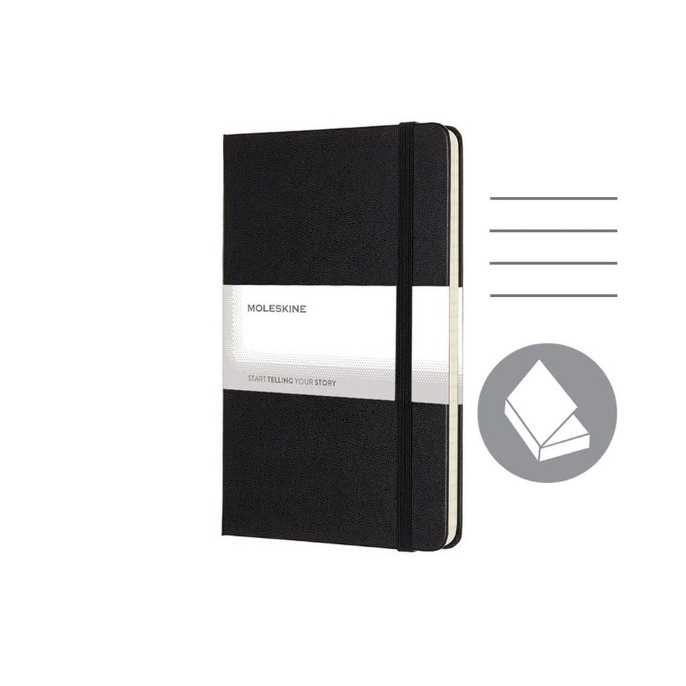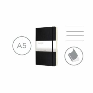 Notatnik MOLESKINE średniej wielkości (ok. B6, medium) jest wyposażony w 208 stron w linie o eleganckim wyglądzie i trwałej twardej okładce. Znajduje się w nim kieszeń wewnętrzna na ważne dokumenty, zakładka, dzięki której łatwo wrócić do wcześniej wpisywanych notatek, oraz elastyczna opaska do zamykania, która umożliwia bezpieczne przechowywanie. Notatnik to praktyczny sposób na zorganizowanie swoich myśli i planów.