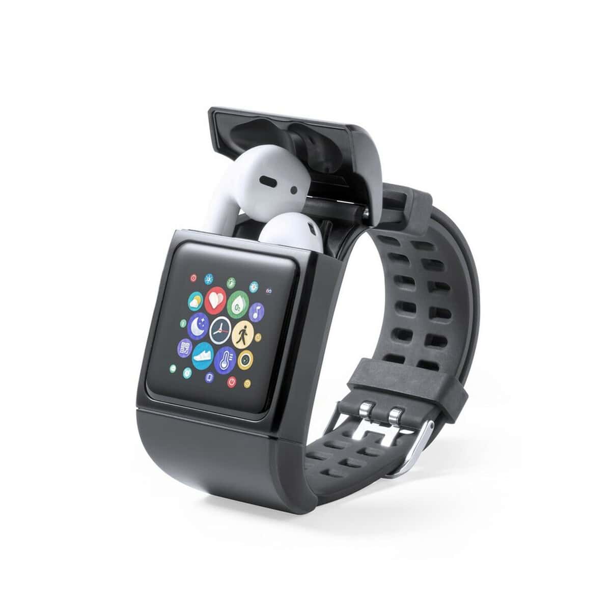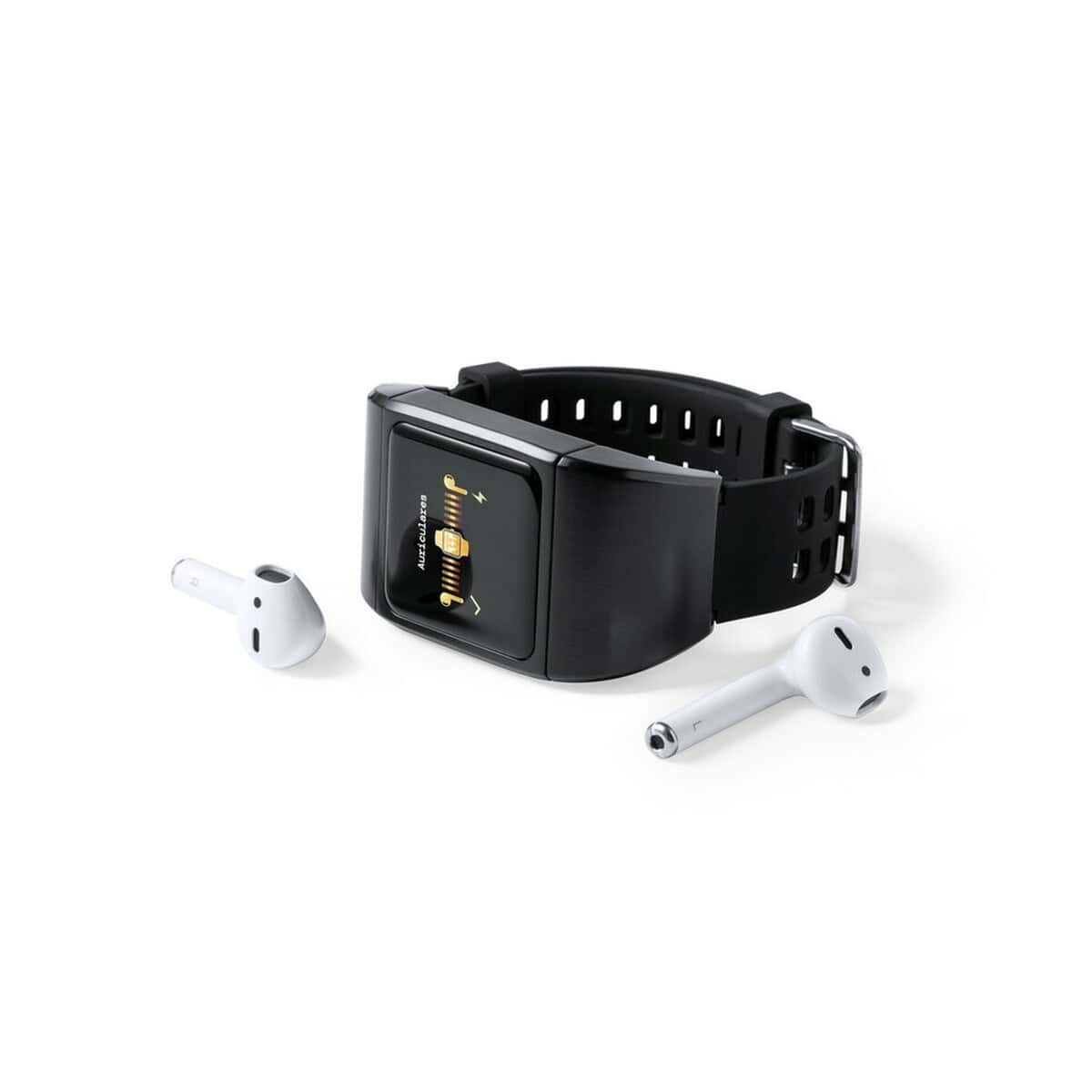 Monitor aktywności, bezprzewodowy zegarek wielofunkcyjny, bezprzewodowe słuchawki douszne to nowoczesny gadżet, który łączy w sobie trzy najpopularniejsze akcesoria mobilne w jednym poręcznym zestawie. Dzięki kompaktowym wymiarom 27 × 4 × 3 cm i elastycznemu paskowi z TPU urządzenie wygodnie leży na nadgarstku, a dołączone słuchawki zawsze masz pod ręką. Jego sercem jest BT 5.0 zapewniający stabilne połączenie z telefonem, a czytelny dotykowy ekran TFT 1,3″ gwarantuje komfort obsługi. Zestaw został stworzony z myślą o ekspozycji Twojego logo; szeroka powierzchnia paska znakomicie sprawdzi się pod nadruk, dzięki czemu zyskujesz praktyczny nośnik wizerunku dla Twojej firmy 🙂