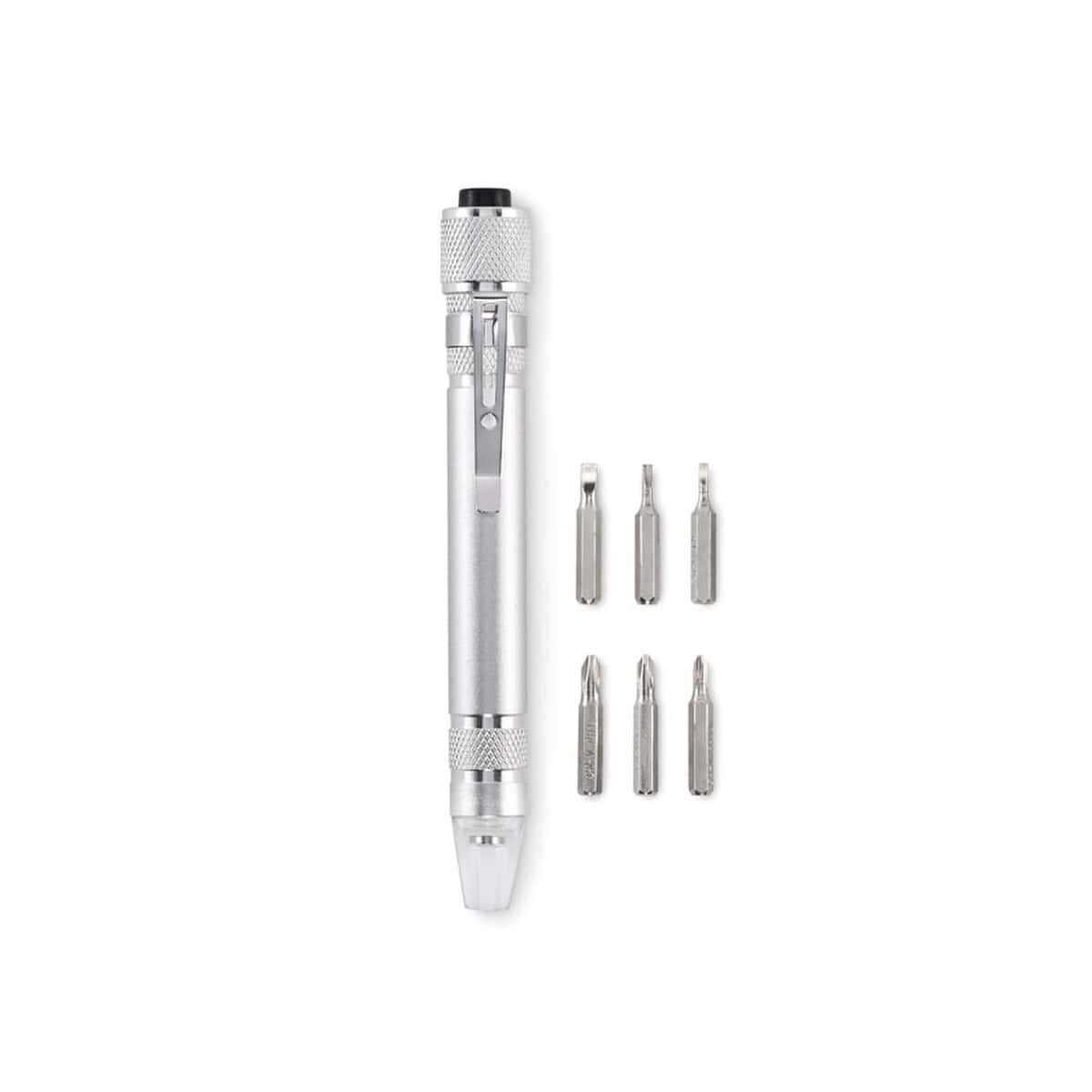 Multitool z recyklingu TUBULAR powstał z myślą o osobach, które kochają praktyczne rozwiązania i ekologiczne materiały. Aluminiowa obudowa wykonana z odzyskanego surowca skrywa aż sześć końcówek – 3 płaskie i 3 krzyżakowe – oraz wbudowaną latarkę LED, dzięki której naprawisz coś nawet w półmroku. To kompaktowe narzędzie wpisuje się w kategorię Narzędzia wielofunkcyjne z logo oraz Latarki z logo, stając się efektownym i niezwykle użytecznym upominkiem reklamowym 😊.