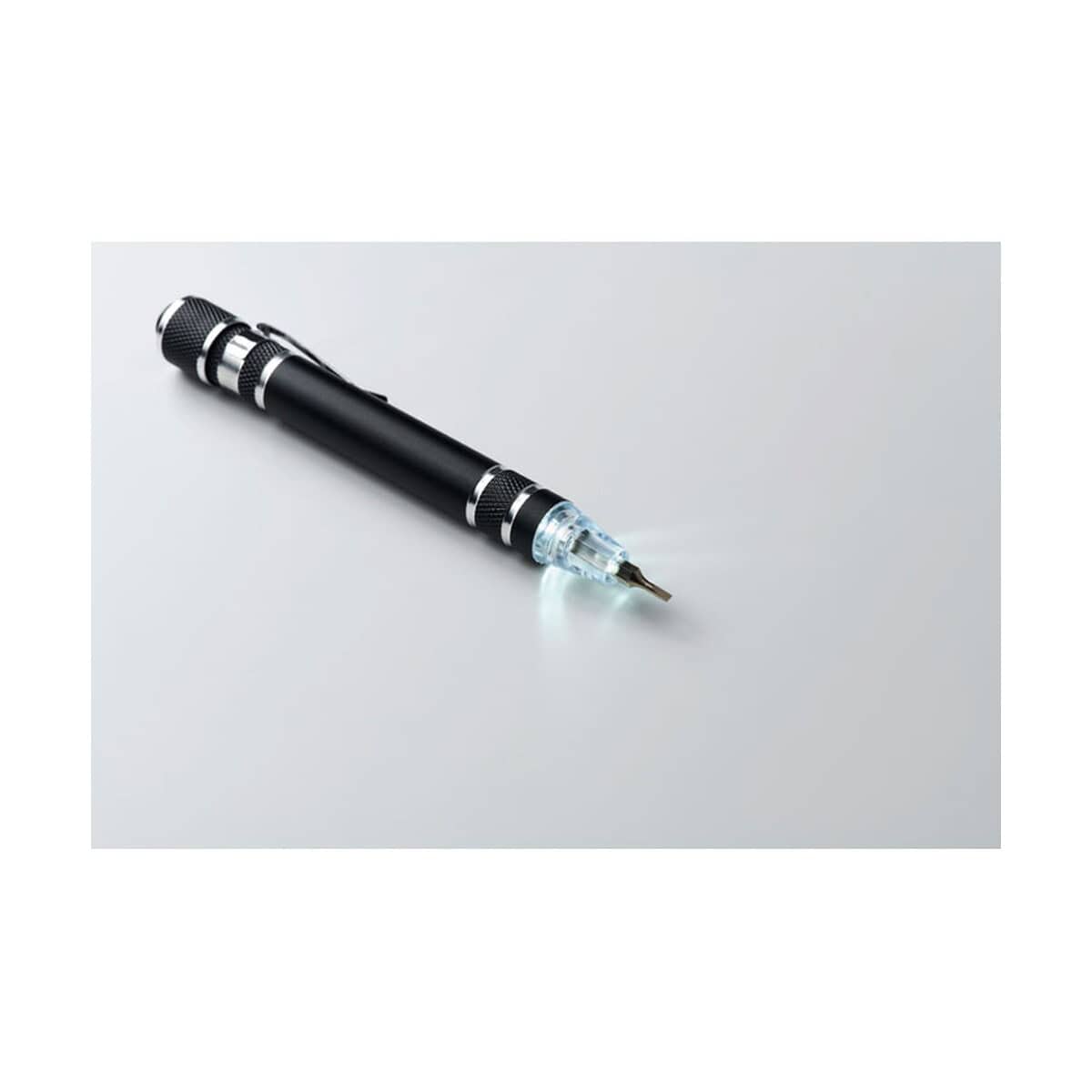 Produkt jest znakomity dla branży budowlanej, motoryzacyjnej, serwisów IT i firm logistycznych – wszędzie tam, gdzie liczy się szybki dostęp do podstawowych śrubokrętów i światła. Jako funkcjonalny gadżet z wyraźnym nadrukiem firmowym stanie się mobilną wizytówką na targach, konferencjach i eventach branżowych. Docenią go zarówno monterzy, rowerzyści, jak i miłośnicy majsterkowania w domu.