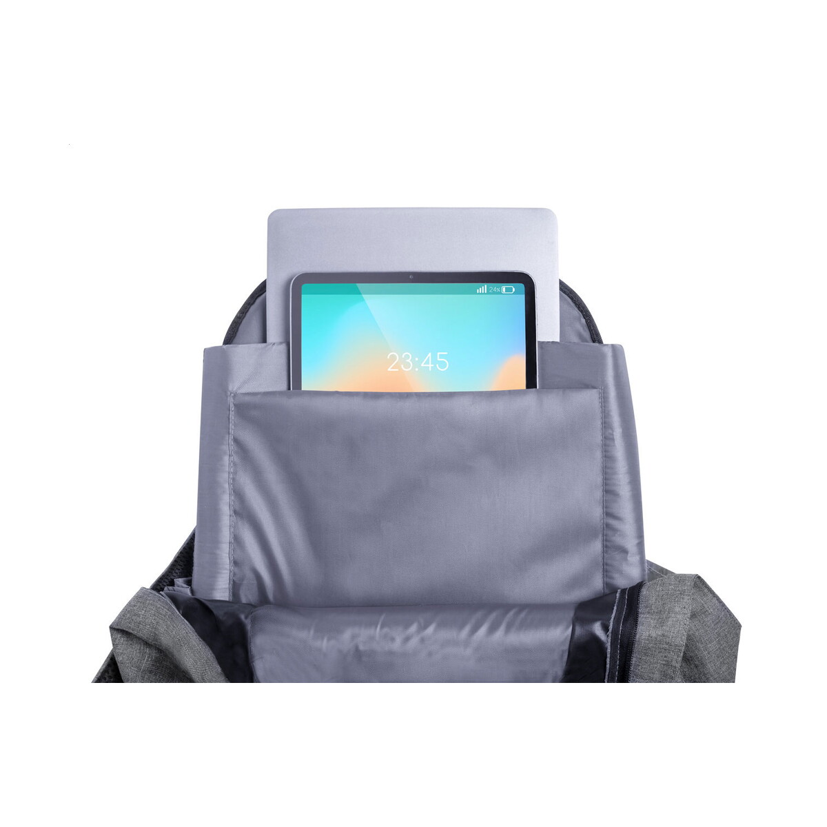 Funkcjonalność kryje się w licznych, starannie zaprojektowanych przegrodach. Wyściełana przegroda na laptop 15″ oraz kieszeń na tablet 12″ zabezpieczą Twoją elektronikę nawet podczas intensywnego dnia. Ukryta kieszeń antykradzieżowa skutecznie ochroni dokumenty i portfel, a pasek do walizki uprości przemieszczanie się na lotniskach. Ergonomiczny tył i regulowane, miękkie paski na ramiona zwiększają komfort noszenia, a wodoodporna tkanina 600D RPET chroni zawartość przed kaprysami pogody.