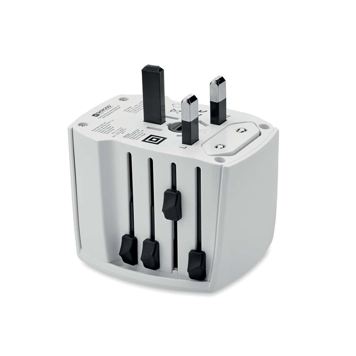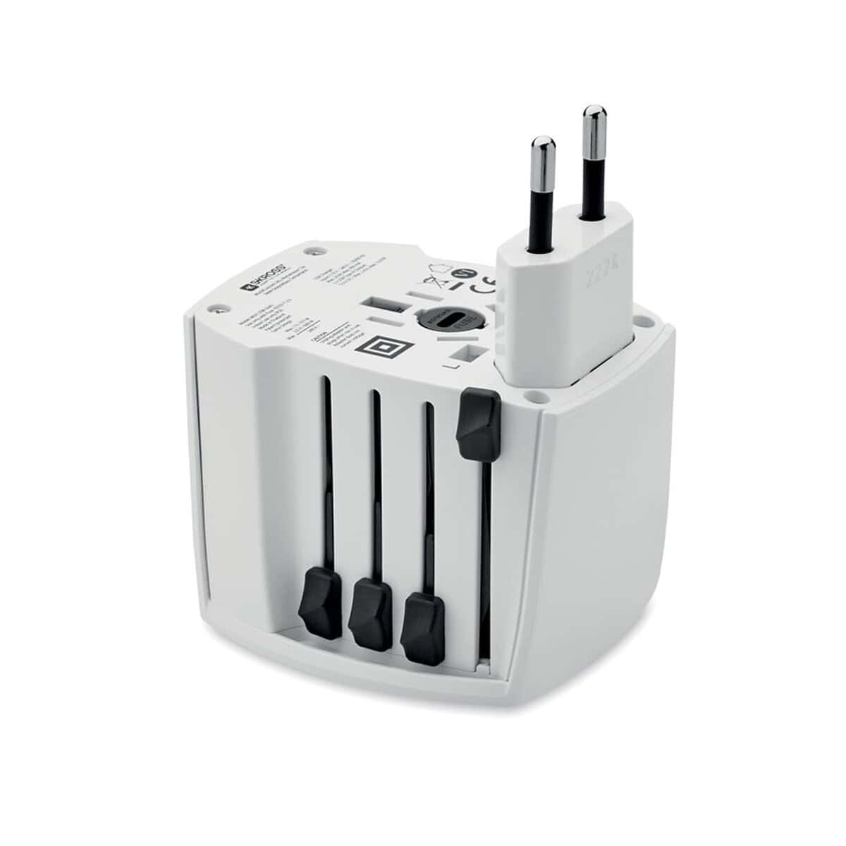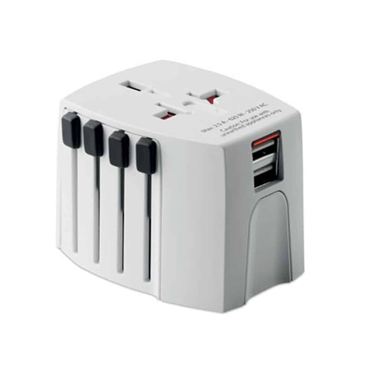 MUV USB. 2-pole MUV USB to wszechstronny, kompaktowy adapter podróżny, który zamieni każdą wyprawę służbową lub urlop w doświadczenie wolne od zmartwień o energię 😊. Łącząc w sobie funkcje klasycznego adaptera oraz ładowarki z 2 porty USB, sprzęt ten pozwala jednocześnie zasilać maszynkę do golenia, smartfon i tablet. 2-biegunowy, bez uziemienia, wykonany z odpornego materiału polycarbonate, wyróżnia się trwałością, a biały kolor idealnie współgra z każdym wnętrzem hotelowym i biurowym. Jego wymiary 6,5x5x5 cm i waga 0,160 kg sprawiają, że zmieści się w kieszeni marynarki lub w przegródce plecaka. Produkt spełnia wszystkie międzynarodowe normy bezpieczeństwa i jest bezpieczny dla dzieci.