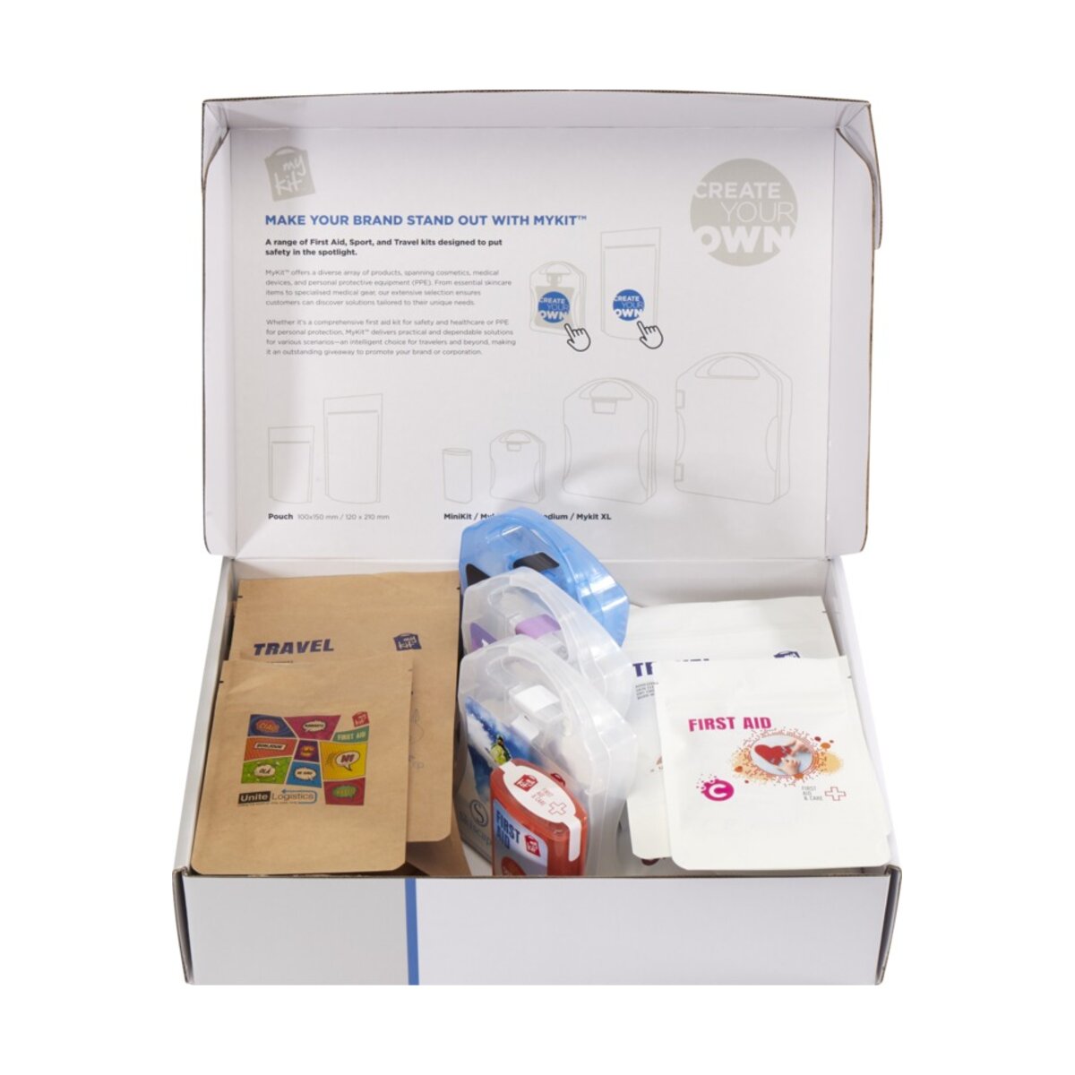 Zadbaj o swoje bezpieczeństwo i komfort bliskich dzięki praktycznej MyKit Sample Box. Zestaw ten składa się z czterech specjalnie przygotowanych modeli zestawów pierwszej pomocy: 1Z2500, 1Z2553, 1Z2625 oraz 1Z2615, które zostały zapakowane w estetyczne opakowania – zarówno plastikowe, jak i papierowe torebki. Każdy element zestawu zgodny jest z wymogami przepisów UE, co gwarantuje ich najwyższą jakość i niezawodność.
