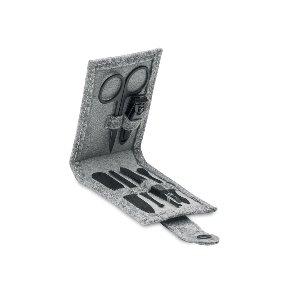 Zestaw NAILKIT FELT 6-el zestaw manicure filc RPET ma uniwersalny, szary kolor i naniesione może być logo firmy, co czyni go doskonałym produktem promocyjnym, szczególnie polecany dla branży beauty i wellness. 🧖♀️