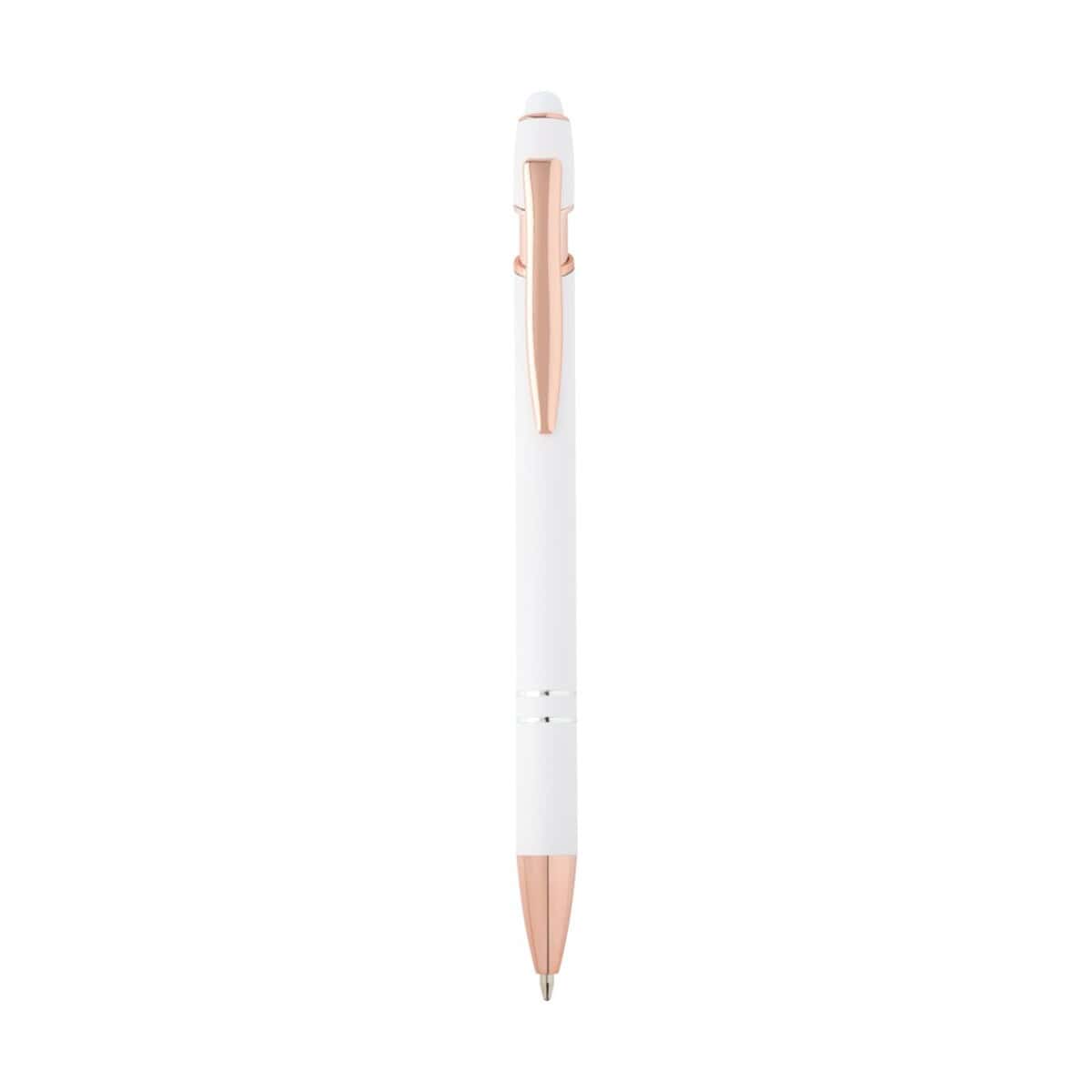 Zintegrowany rysik dotykowy z silikonu sprawia, że Nanna długopis z wykończeniem w kolorze różowego złota jest doskonałym narzędziem również do obsługi ekranów dotykowych, co czyni go perfekcyjnym dodatkiem podczas spotkań biznesowych czy konferencji online. Niebieski tusz o grubości 1,0 mm i żywotności aż 800 m umożliwia długie, komfortowe pisanie. To rewelacyjny gadżet reklamowy dla branży beauty, jubilerskiej, IT, finansowej czy kreatywnej – wszędzie tam, gdzie liczy się styl, funkcjonalność i odpowiedzialność środowiskowa 🌿.