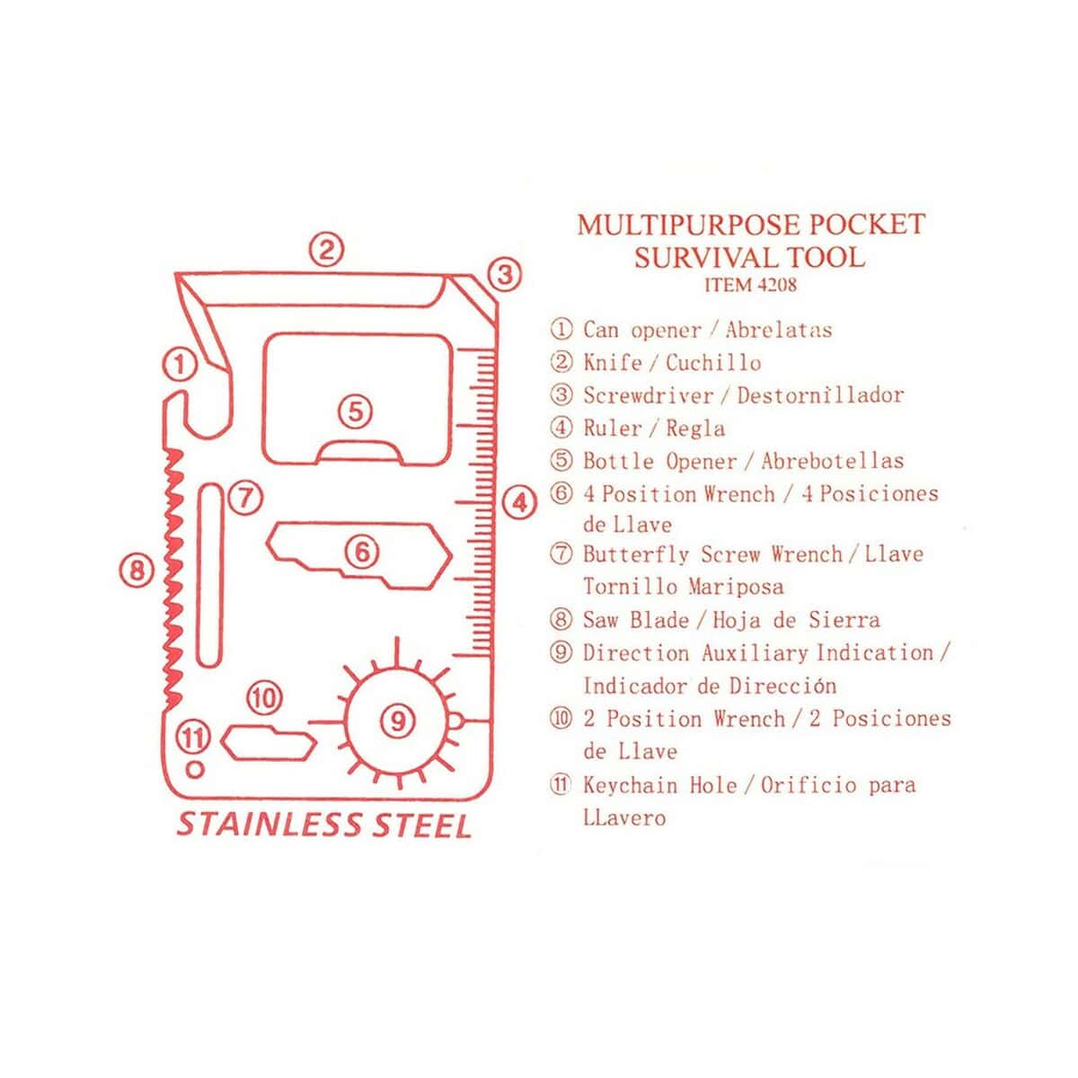 Narzędzie wielofunkcyjne, 11 funkcji to kompaktowy gadżet, który zachwyca swoją wszechstronnością oraz eleganckim designem w kolorach srebrny i czarny 🙂. Wykonany z stali nierdzewnej, mierzy zaledwie 8 x 5,5 x 0,3 cm i waży jedynie 30 g, dzięki czemu bez trudu zmieści się w kieszeni, portfelu czy etui plecaka. Ten niewielki pomocnik skrywa aż 11 funkcji: otwieracz do puszek, nóż, śrubokręt, linijkę, otwieracz do butelek, cztery różne klucze (do nakrętek i motylkowe), piłę oraz kątomierz. Wszystko, czego potrzebujesz w codziennych i ekstremalnych sytuacjach, masz pod ręką! 🔧