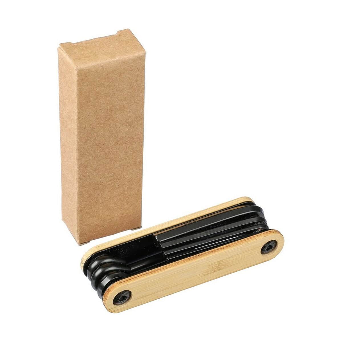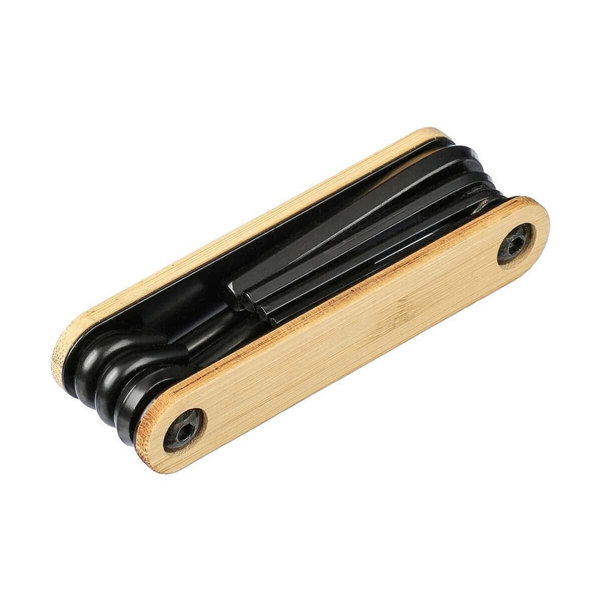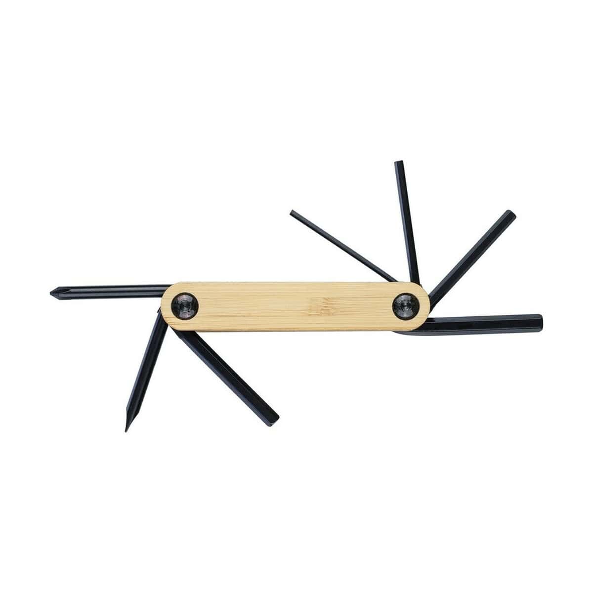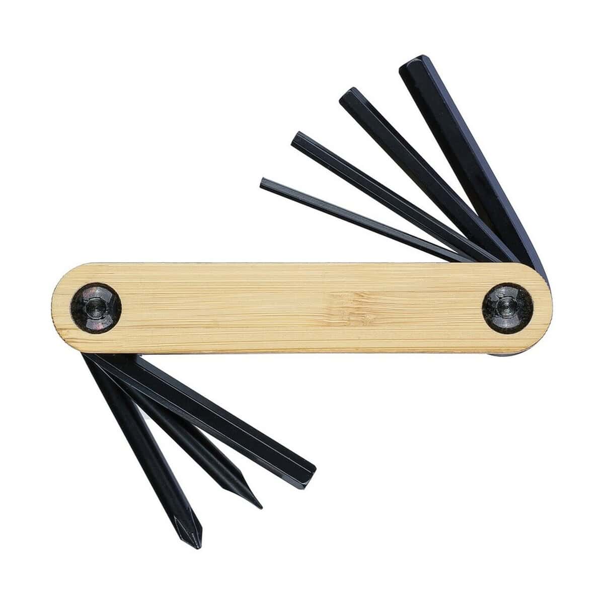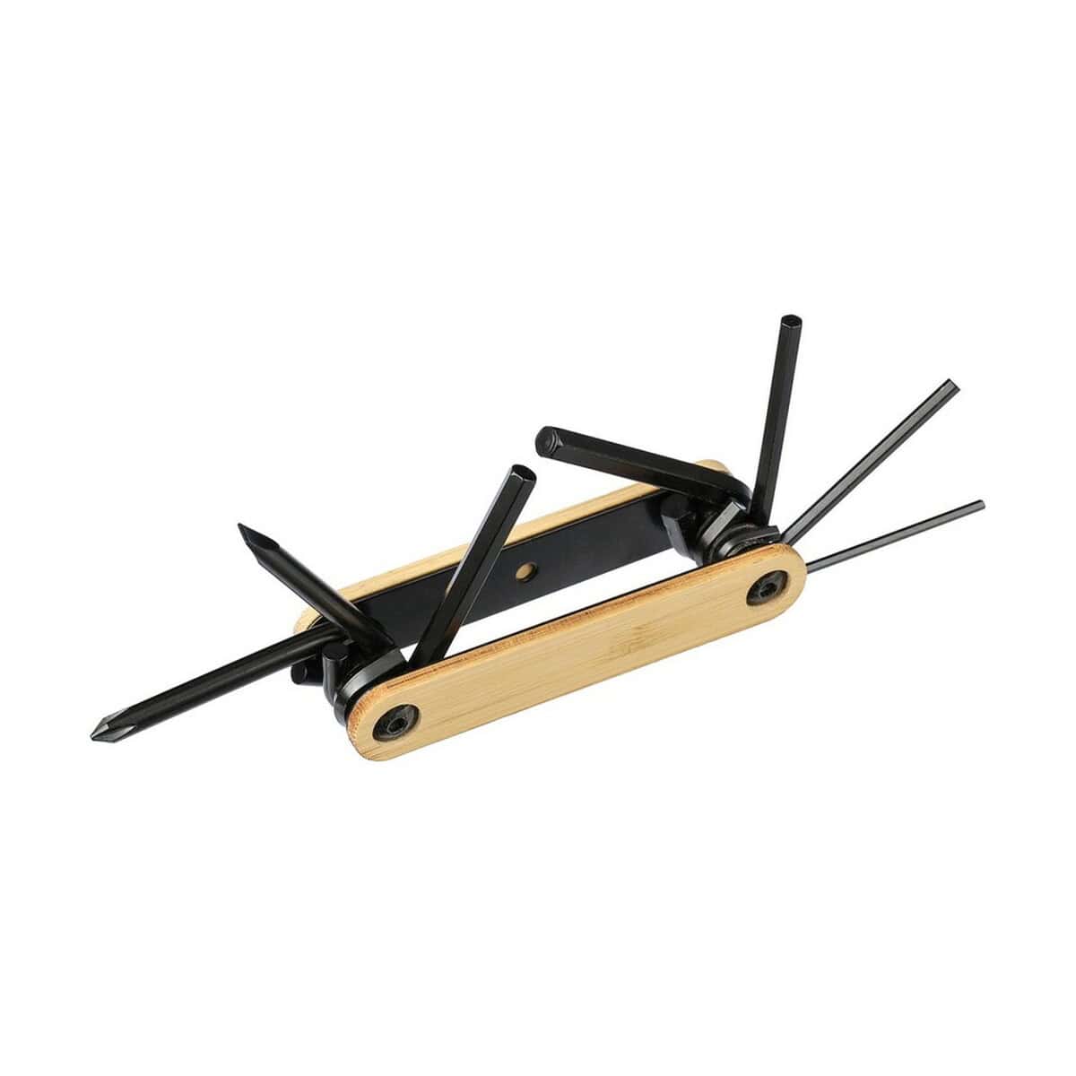 Sercem produktu jest zestaw 7 funkcji: pięć kluczy imbusowych w najpopularniejszych rozmiarach, śrubokręt krzyżakowy oraz śrubokręt płaski. Całość wykonano z odpornej na uszkodzenia stali węglowej, której eleganckie połączenie z naturalnym, przyjemnym w dotyku bambusem nadaje całości stylu i ekologicznego charakteru. Produkt dostarczany jest w estetycznym, brązowym kartoniku, gotowym do wręczenia jako upominek.