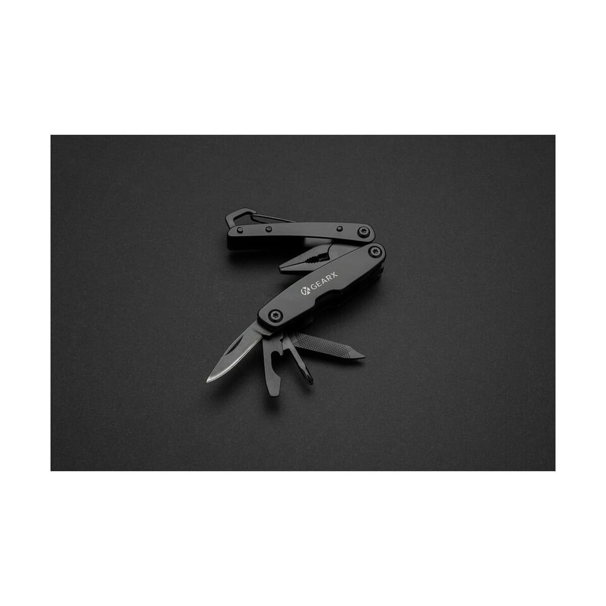 W korpusie z odpornej na korozję stali nierdzewnej ukryto aż sześć kluczowych funkcji: kombinerki, nóż, otwieracz do butelek, śrubokręt płaski, śrubokręt krzyżakowy oraz pilnik. Całość mieści się w wymiarach 7,5 × 3,7 × 1,8 cm i waży tak niewiele, że bez trudu schowasz ją w kieszeni lub przytroczysz do paska. Matowy, czarny kolor dodaje elegancji, a teksturowane wykończenie zapewnia pewny chwyt nawet w rękawicach roboczych.