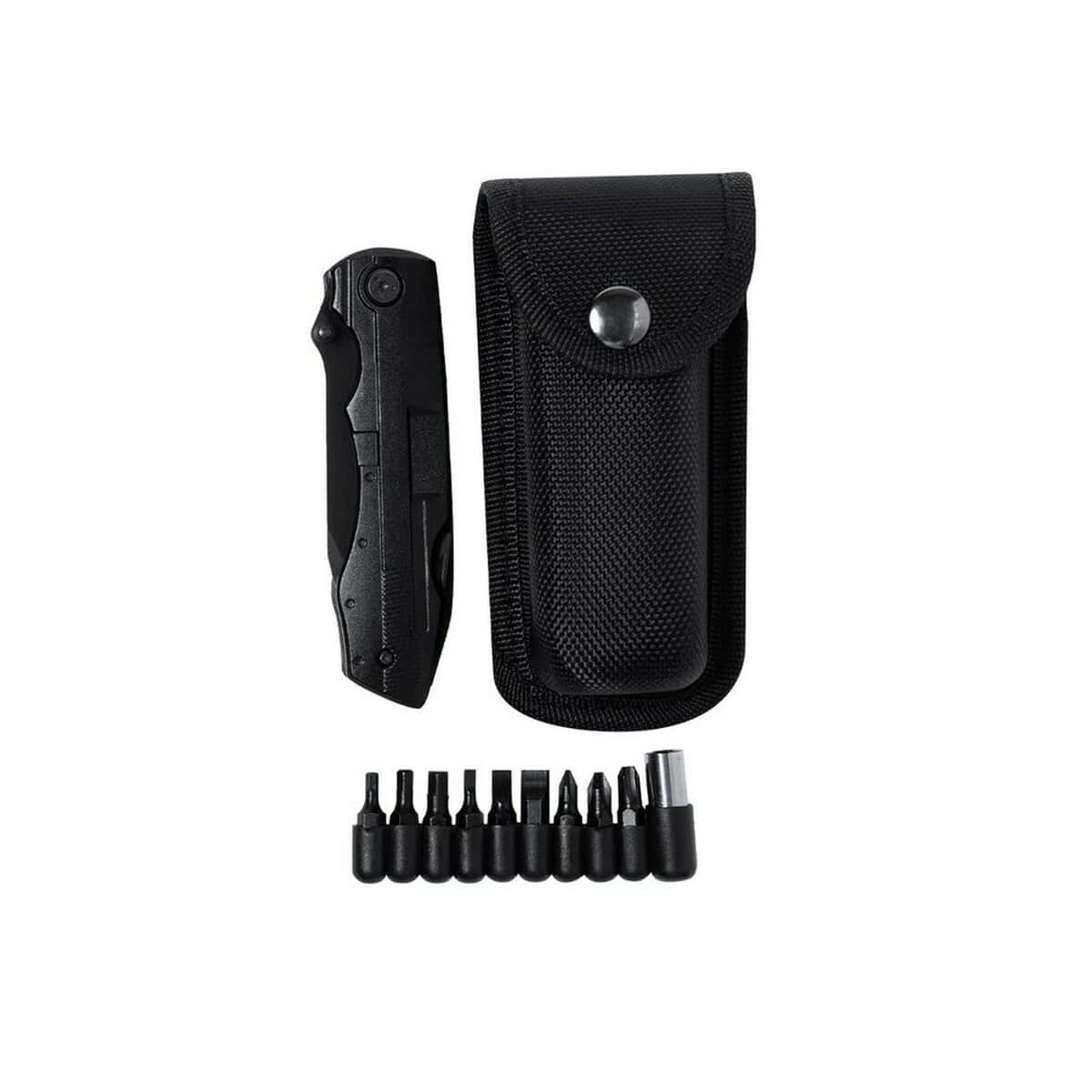 Narzędzie wielofunkcyjne, scyzoryk, 10 funkcji, 10 el., etui sprawdzi się podczas wypadów survivalowych, biwaków, podróży służbowych, a nawet w domowym warsztacie. Z nim otworzysz butelkę po udanym spotkaniu, błyskawicznie dokręcisz śrubę w rowerze, przetniesz kabel, a w razie potrzeby porąbiesz drobne gałązki na ognisko. Niewielkie rozmiary i wysoka funkcjonalność czynią go rozwiązaniem wręcz znakomitym na każdą okazję – jako upominek reklamowe czy niezastąpione narzędzie codziennego użytku.