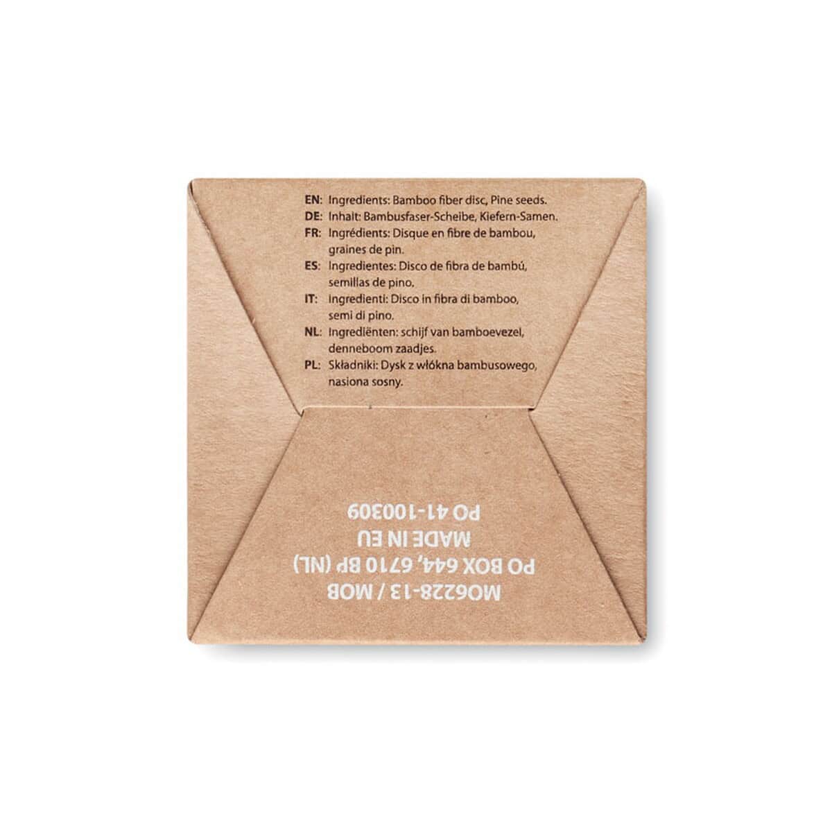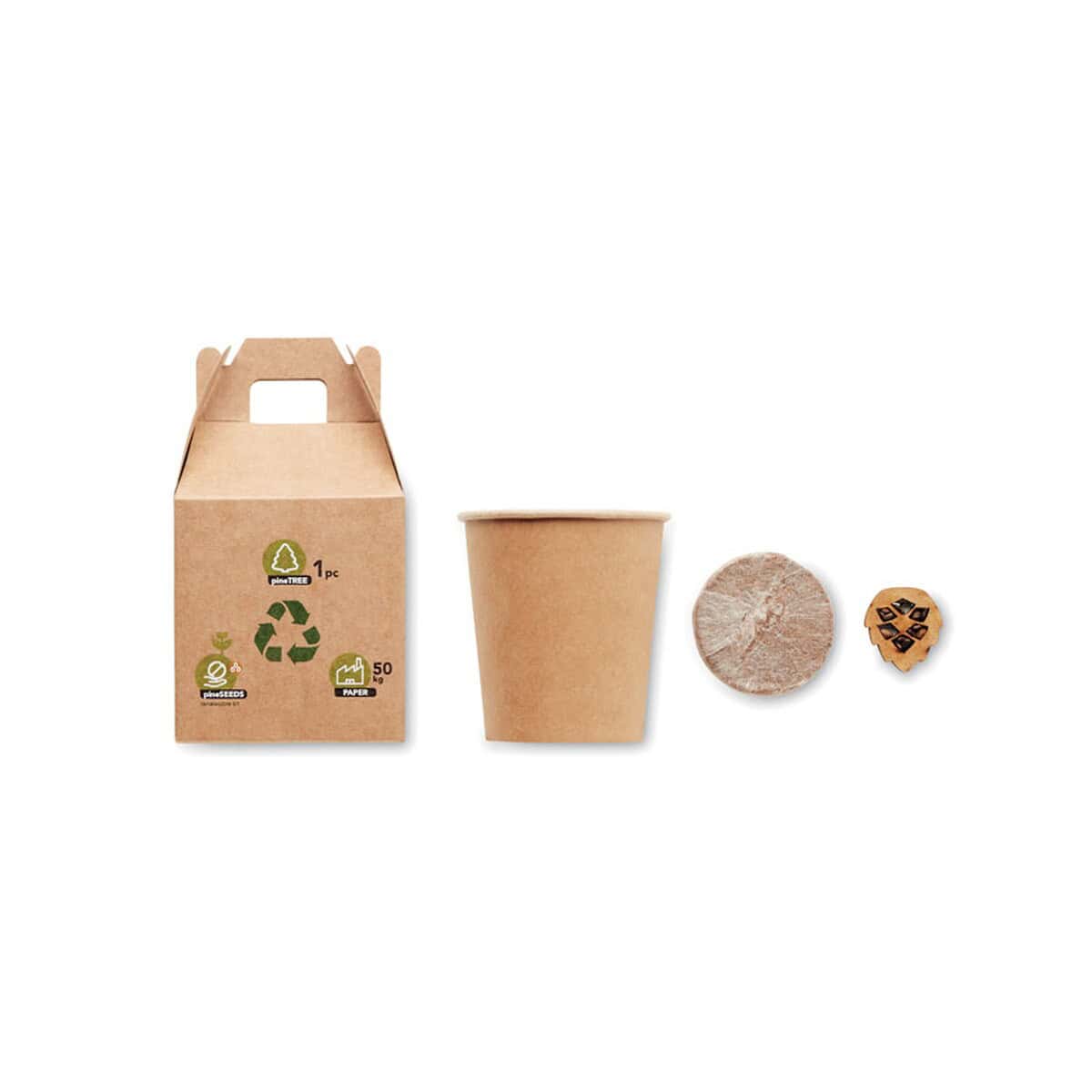 Nasiona sosny, torf, doniczka GROWTREE™ to znakomity sposób, aby w kampanii promocyjnej nie tylko zaistnieć, ale również zrobić coś dobrego dla planety 🌱. W zestawie znajdują się nasiona sosny (pinus nigra), porcja torfu oraz biodegradowalna doniczka z kartonu, które razem pozwalają „zwrócić ziemi drzewo”. Posadzona sosna rośnie ok. 30 cm rocznie, a cały komplet został wyprodukowany w EU, co podkreśla jego ekologiczny charakter. Wymiary 7 × 6,5 × 13 cm i waga 0,031 kg sprawiają, że paczuszka jest lekka i poręczna, dzięki czemu łatwo rozdawać ją na targach czy eventach.