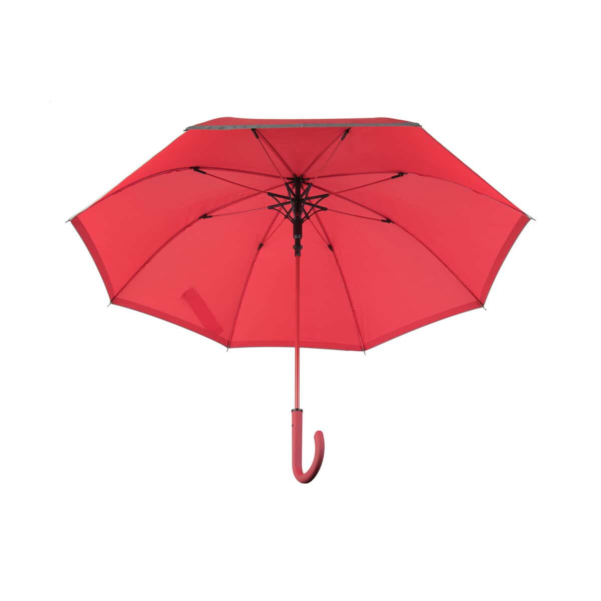 Średnica ø1100×820 mm i masa zaledwie 400 g czynią z parasola funkcjonalny, poręczny gadżet, który z łatwością zmieści się w samochodowym schowku, torbie konferencyjnej czy plecaku. To wyrób przeznaczony wyłącznie do celów promocyjnych, dlatego nie kwalifikuje się jako sprzęt ochrony osobistej, ale w roli nośnika przekazu sprawdza się perfekcyjnie. Czerwony kolor budzi emocje, przyciąga wzrok i stanowi wyśmienite tło pod wyrazisty nadruk.