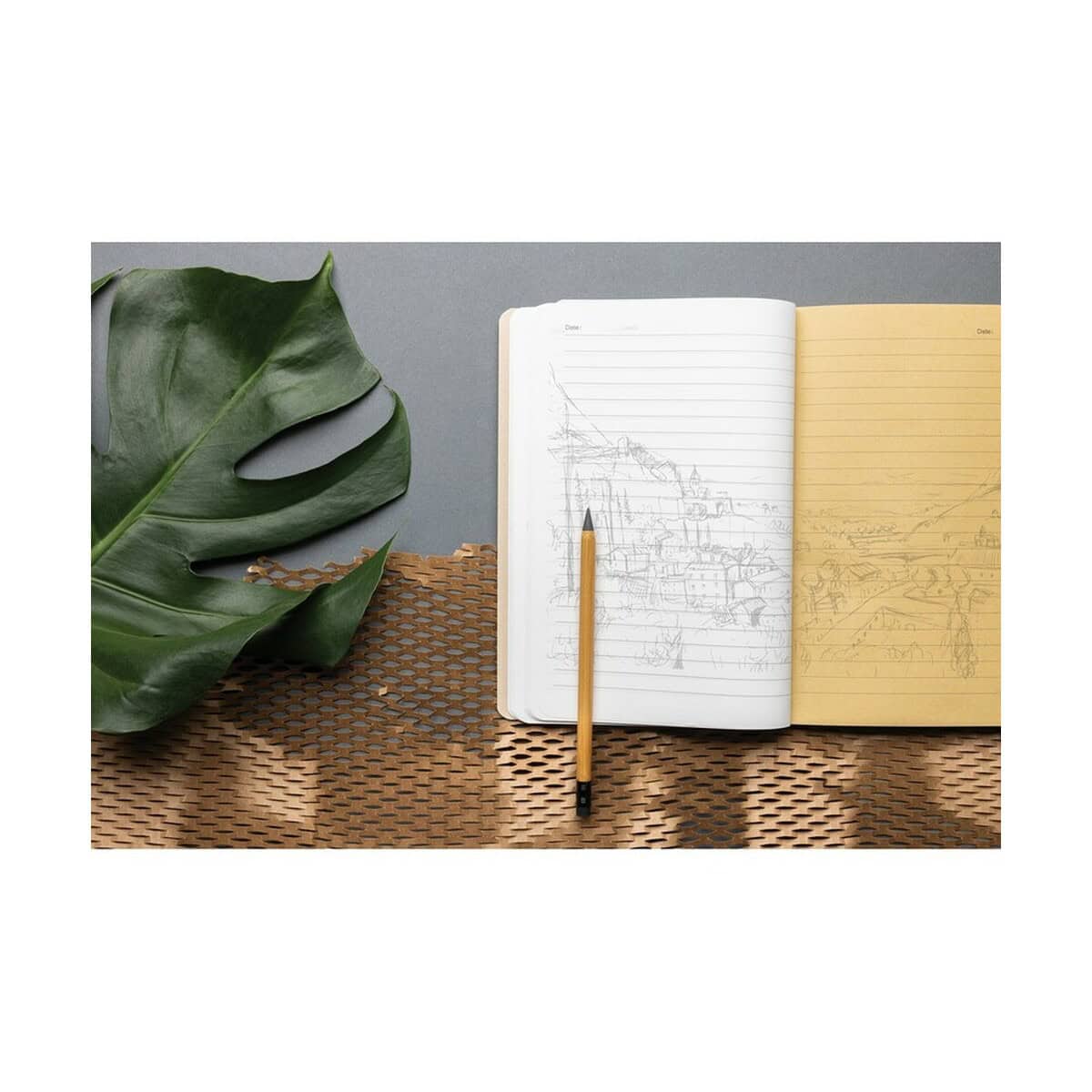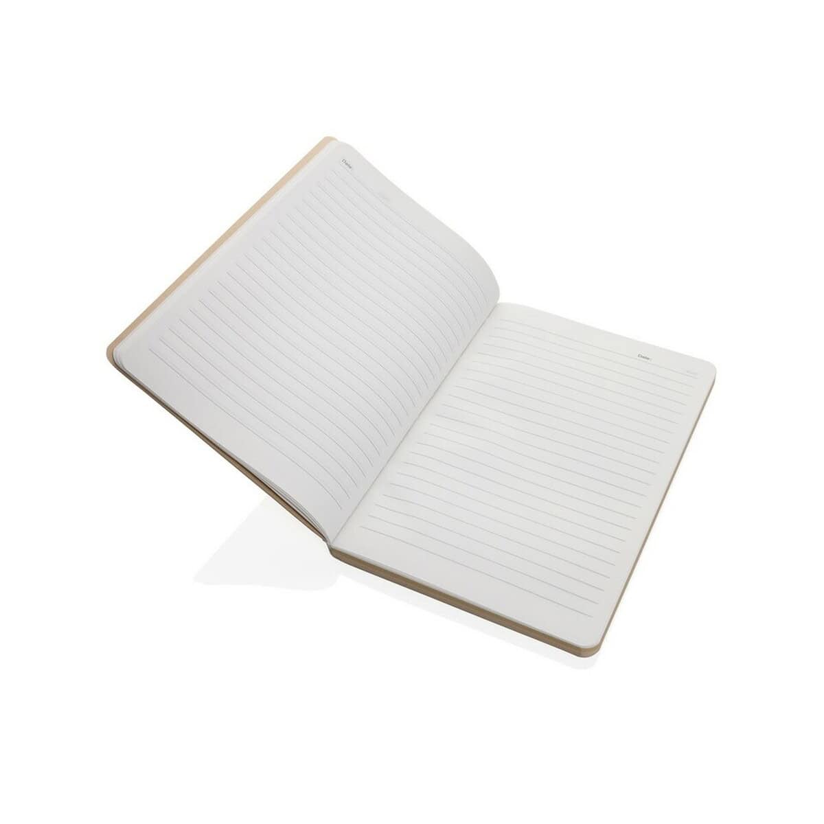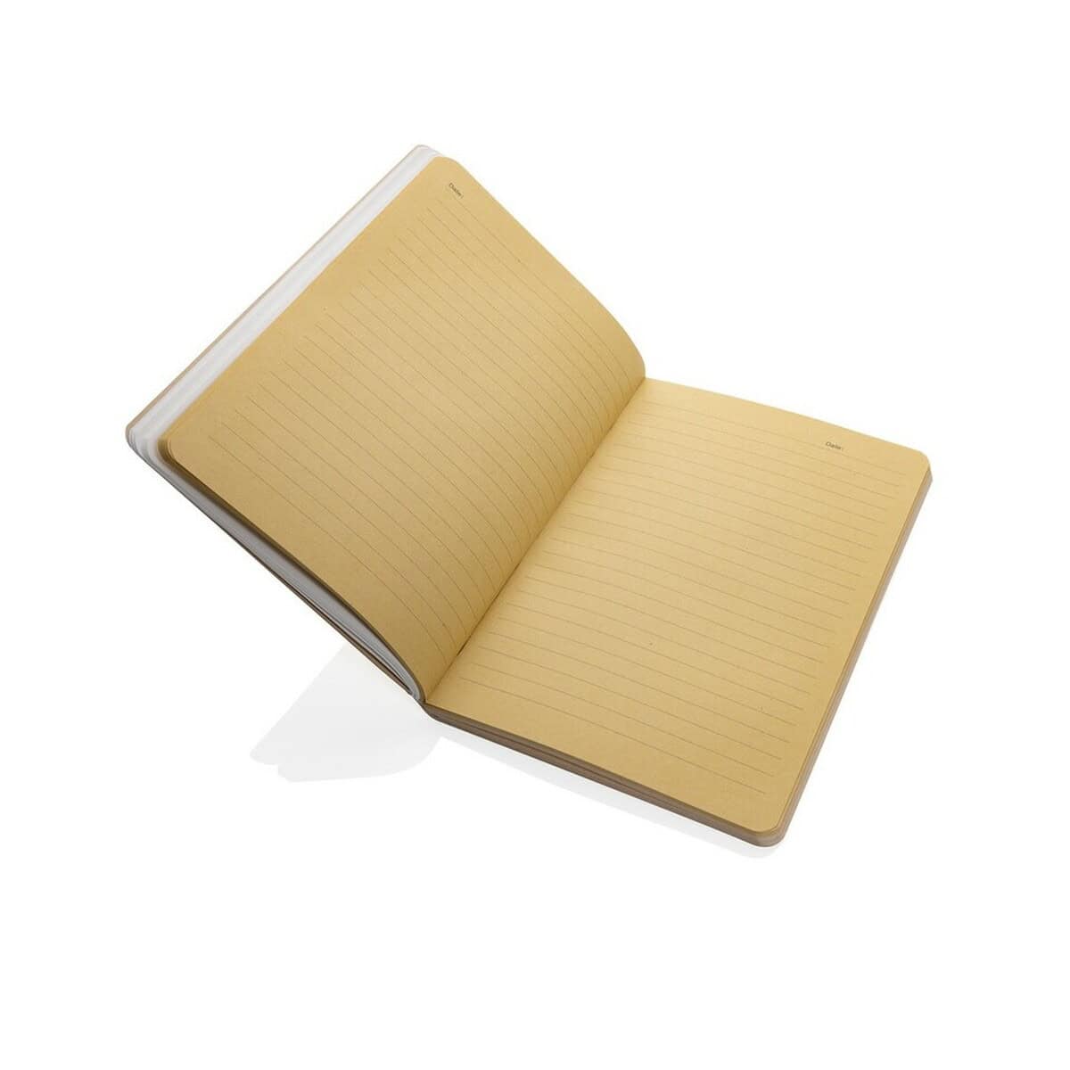 Notatnik A5 Elowen to wyjątkowy, eko-friendly gadżet, który znakomicie sprawdzi się jako personalizowany prezent dla Twojej firmy. Dzięki miękkiej okładce z włókien trzciny cukrowej oraz 48 stronom w linie wykonanym z unikalnej mieszanki bambusa, kamienia i trzciny, jest nie tylko praktyczny, ale i przyjazny środowisku. Połączenie naturalnych surowców z papierem kraftowym z certyfikatem FSC® podkreśla rosnące znaczenie zrównoważonego rozwoju w biznesie 🌿.