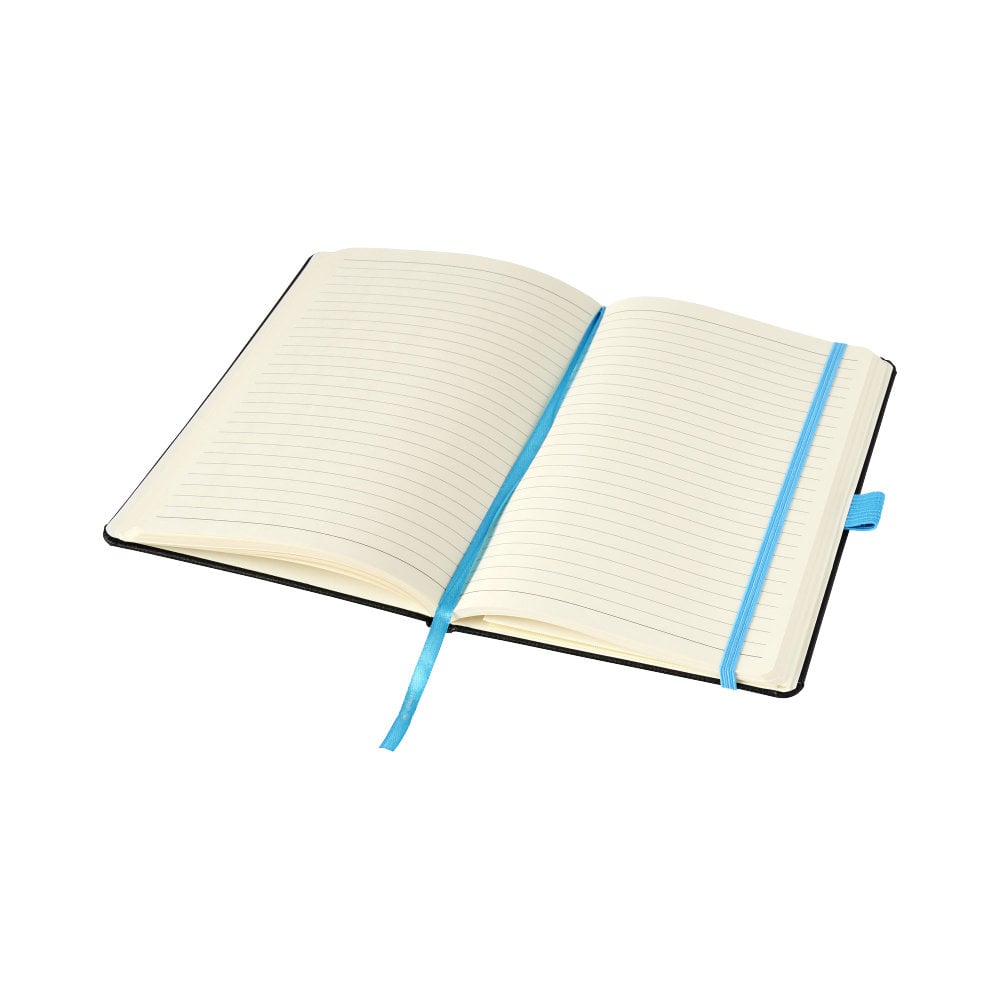 Ten notatnik to idealny prezent dla każdego, kto lubi mieć wszystko pod kontrolą i wyglądać dobrze przy tym. Notatki mają trwałą okładkę w wybranym kolorze: niebieskim, czerwonym, zielonym lub żółtym, z wygrawerowanym logo. Wyposażony jest w elastyczne zamknięcie, wstążeczkę i elastyczną pętelkę na długopis, a także elastyczną kieszeń z tyłu, aby trzymać wszystkie drobne notatki. Notatnik jest wyposażony w 80 kartek w linie, o grubości 80 g, oraz jest zapakowany w rękaw, dzięki czemu jest łatwy do przechowywania i transportowania.