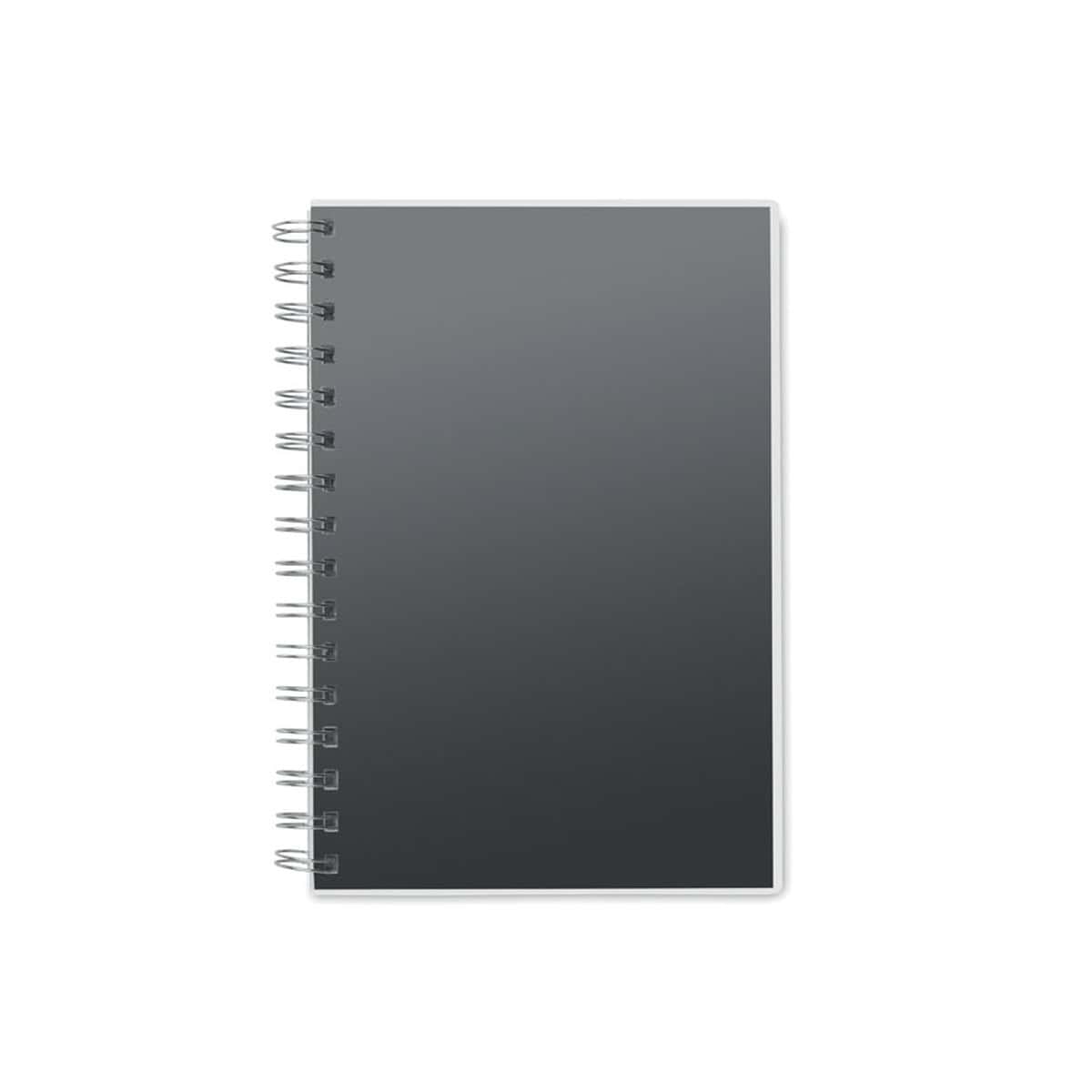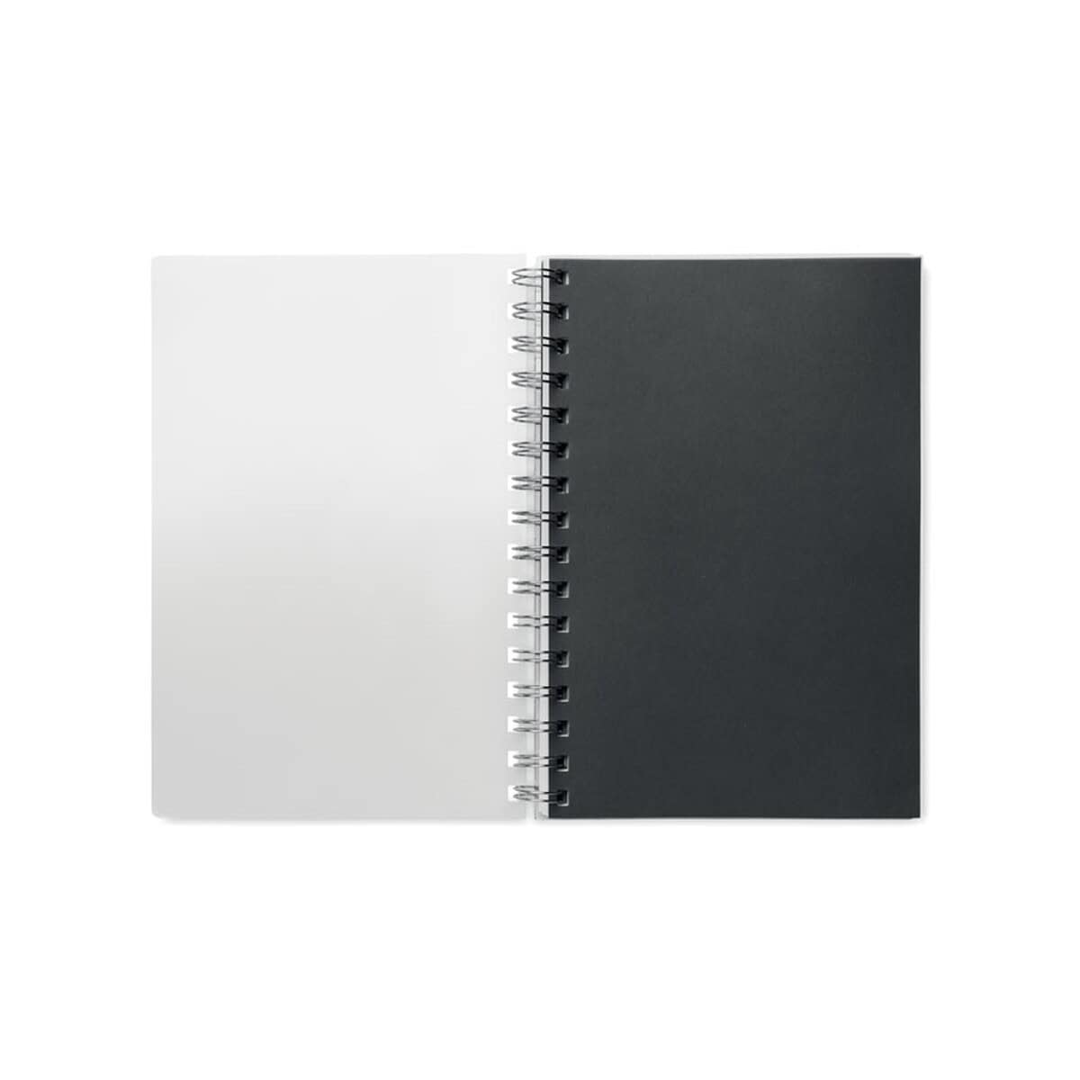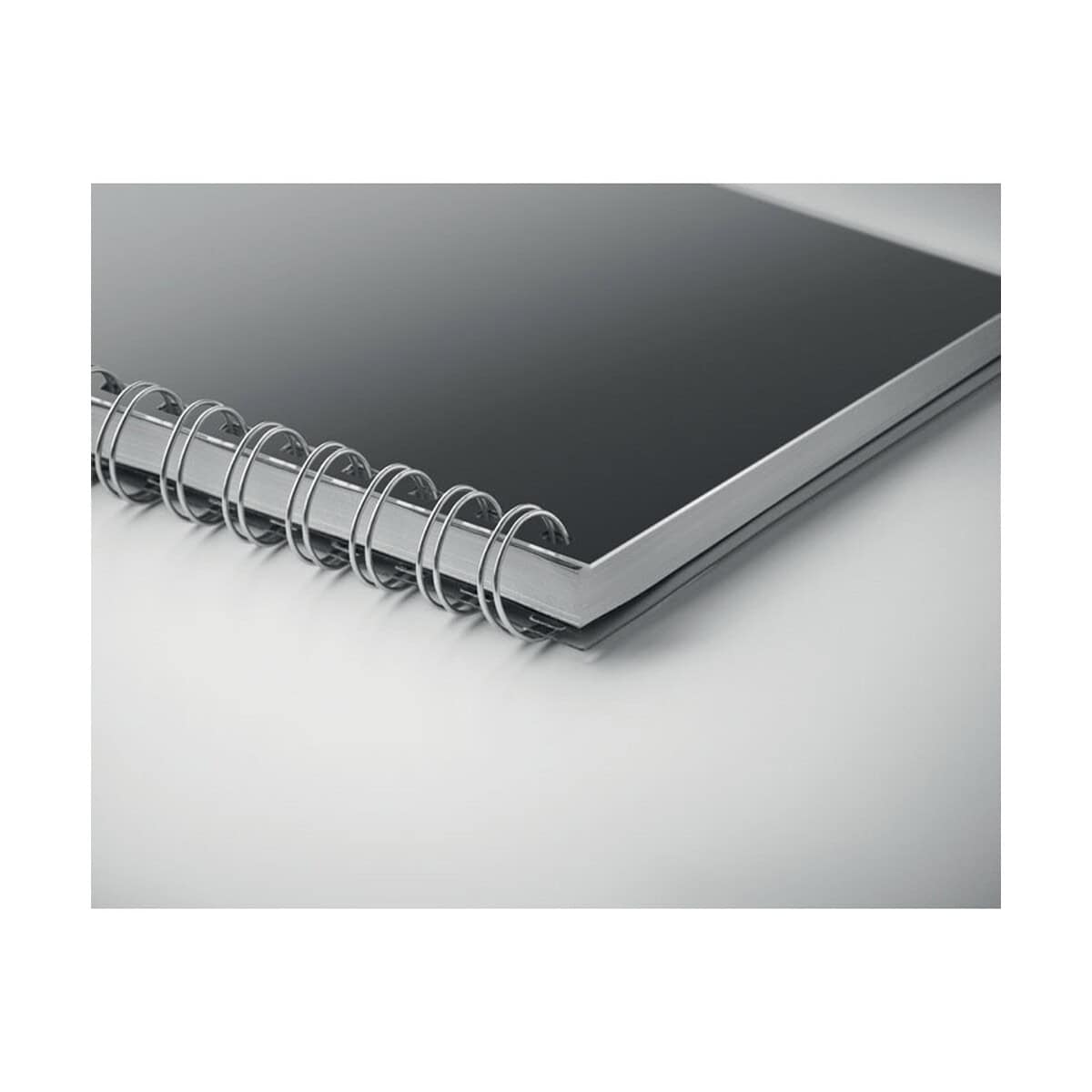 Notatnik A5 spiralowany ANOTATE to znakomity sposób, aby każdy pomysł zyskał trwałą formę na papierze. Dzięki solidnej podwójnej spirali i okładce wykonanej z RPET, ten model z kategorii notatniki z logo łączy ekologię z nowoczesnym designem 😊. Aż 160 białych, liniowanych stron (80 kartek) z recyklingu zachęca do tworzenia notatek, szkiców czy planów, a kompaktowy format A5 pozwala mieć go zawsze pod ręką – w biurze, na uczelni czy w podróży.